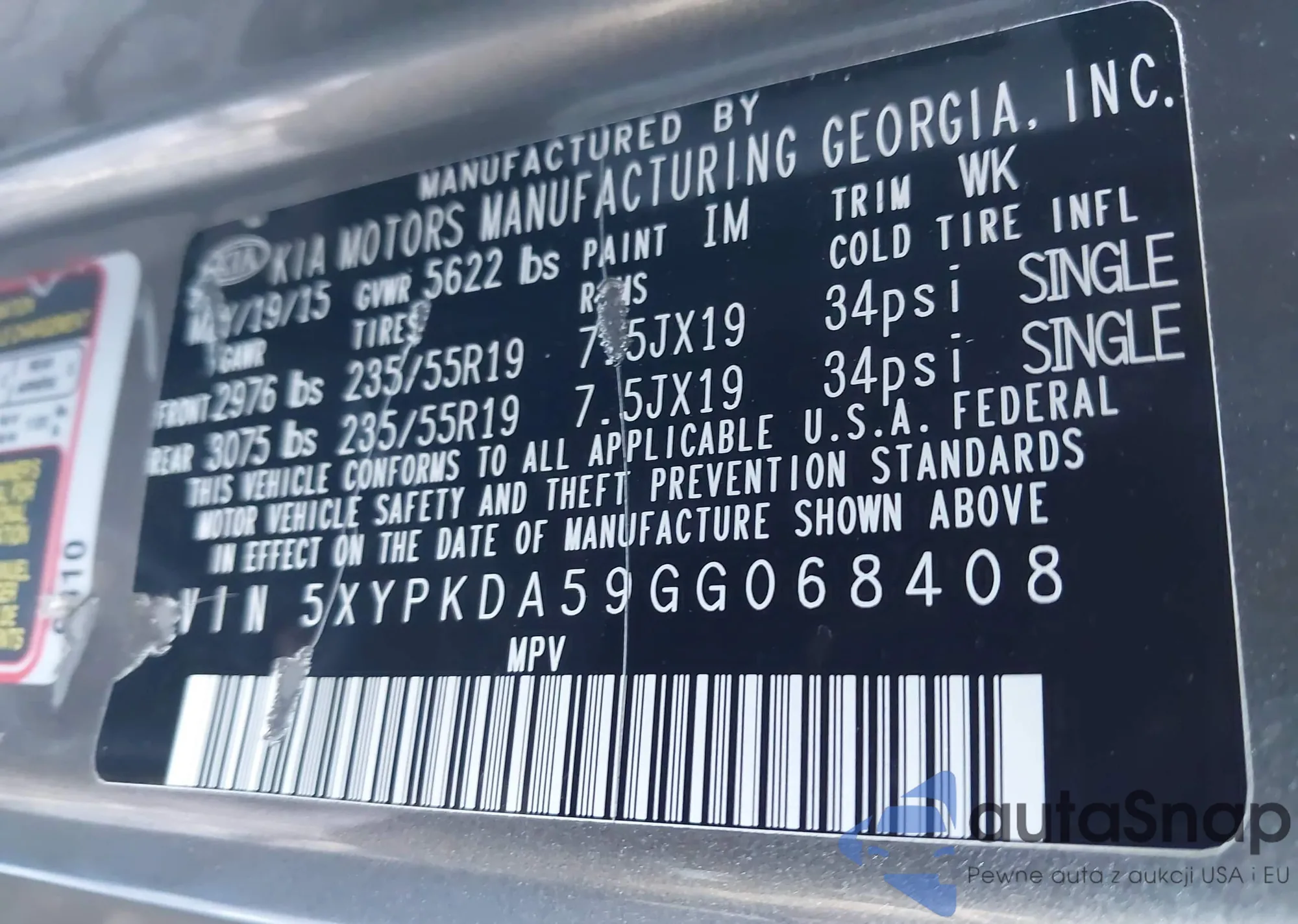 The car Kia Sorento 2016 (VIN 5XYPKDA59GG068408) has not been auctioned before. The documents are clean, and the mileage matches or is below the market average. Sold by an insurance company – we recommend purchase. Delivery to the port will take approx. 6–8 weeks.