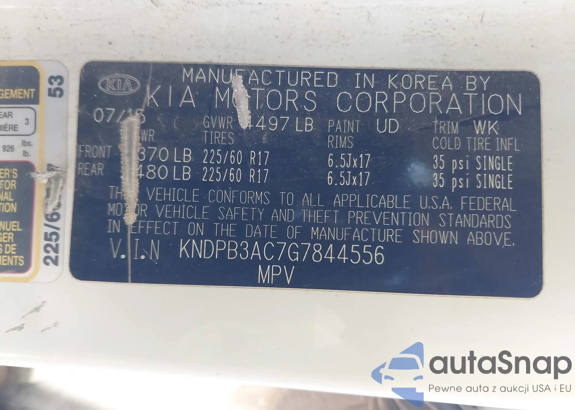 The car Kia Sportage 2016 (VIN KNDPB3AC7G7844556) has not been auctioned before. The documents are clean, and the mileage matches or is below the market average. Sold by an insurance company – we recommend purchase. Delivery to the port will take approx. 6–8 weeks.