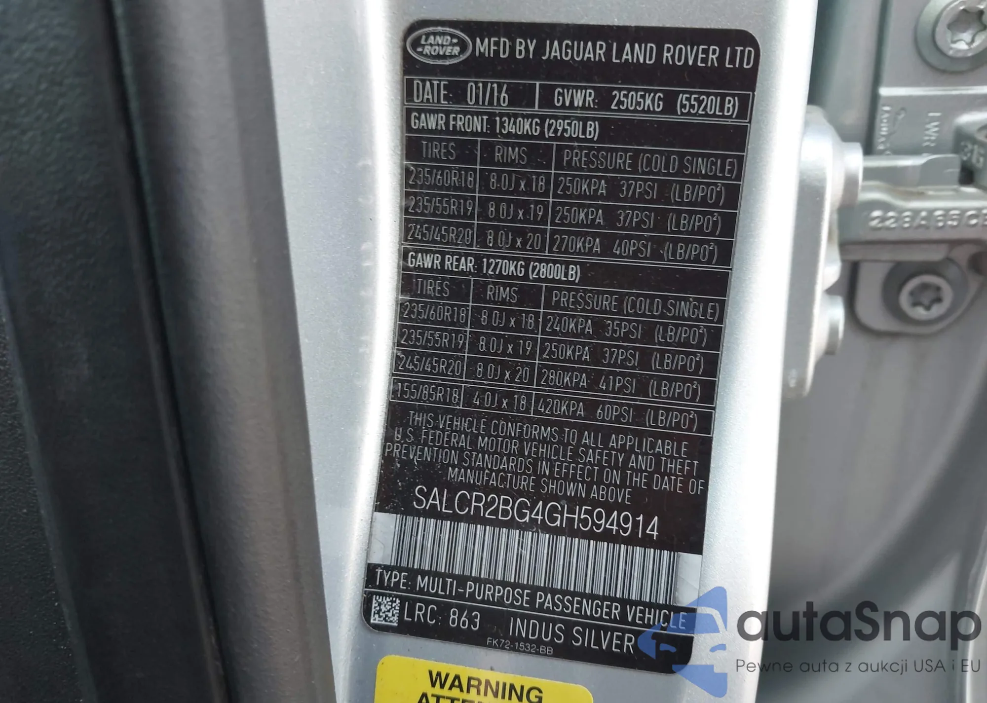 • VIN: SALCR2BG4GH594914