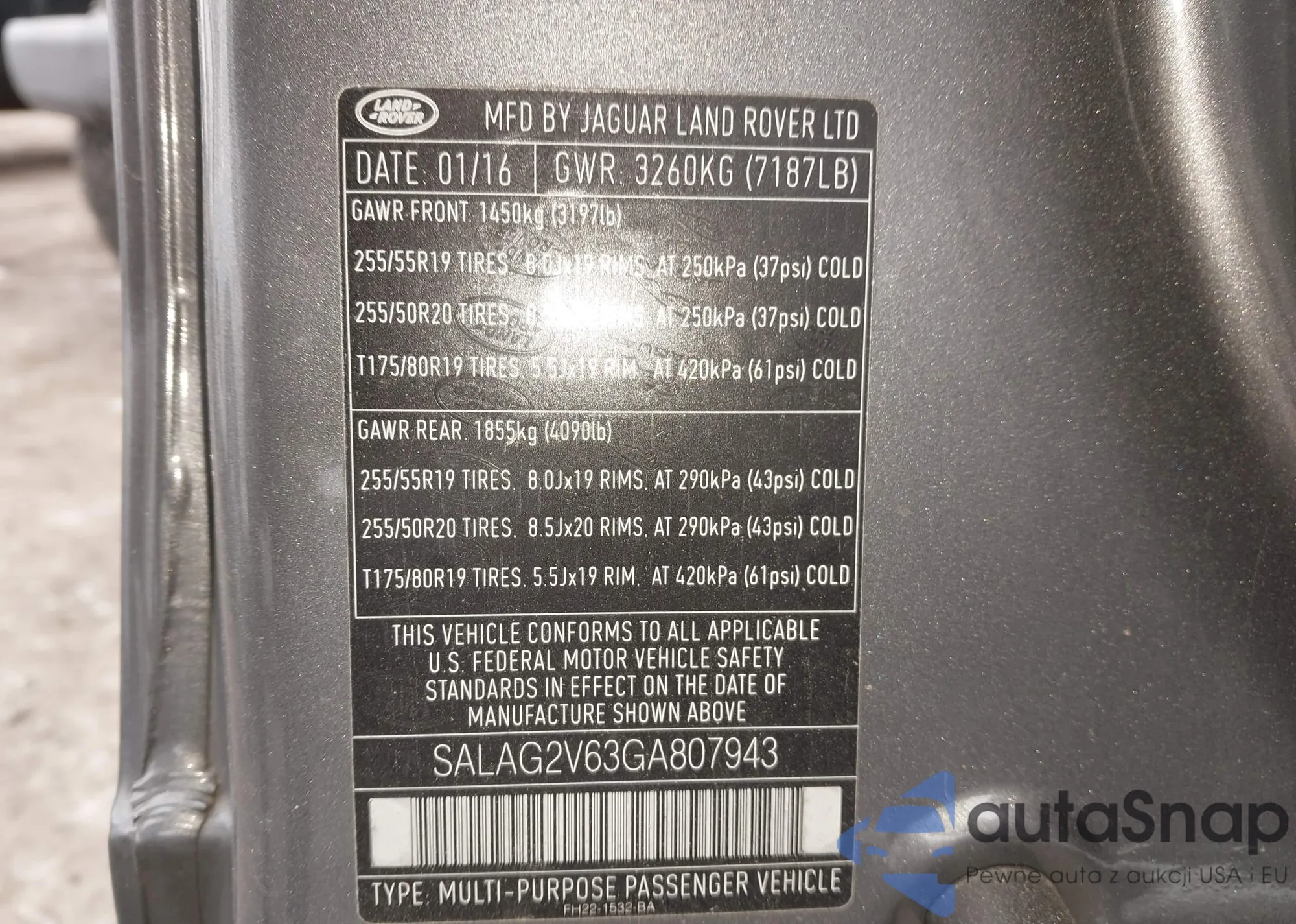 The car Land Rover LR4 2016 (VIN SALAG2V63GA807943) is sold by an unverified seller. We recommend checking the Carfax report and confirming registration possibilities before purchase.