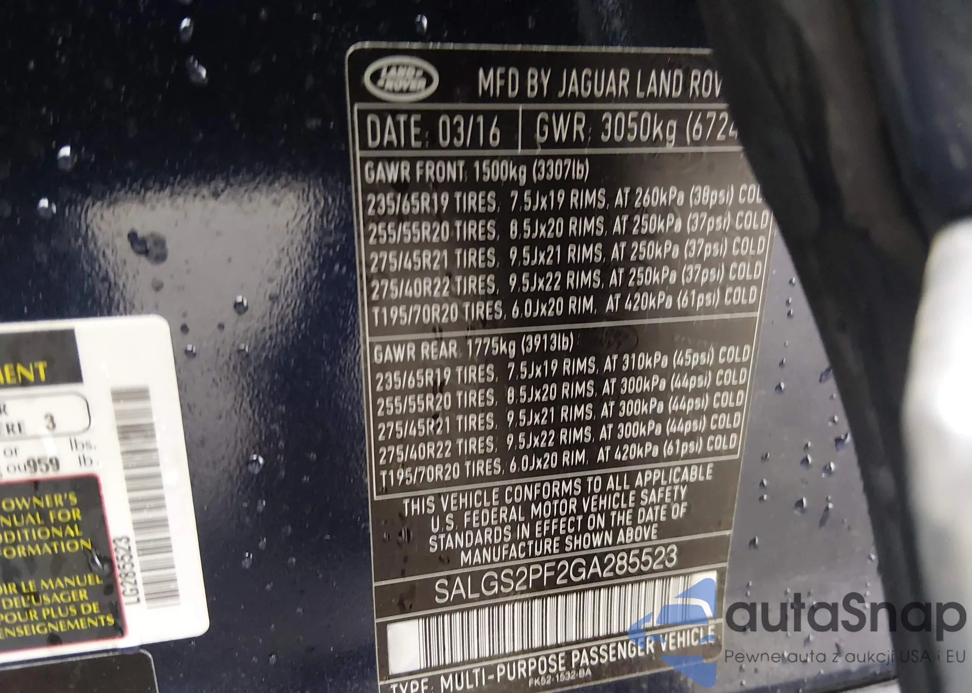The car Land Rover Range Rover 2016 (VIN SALGS2PF2GA285523) has not been auctioned before. The documents are clean, and the mileage matches or is below the market average. Sold by an insurance company – we recommend purchase. Delivery to the port will take approx. 6–8 weeks.