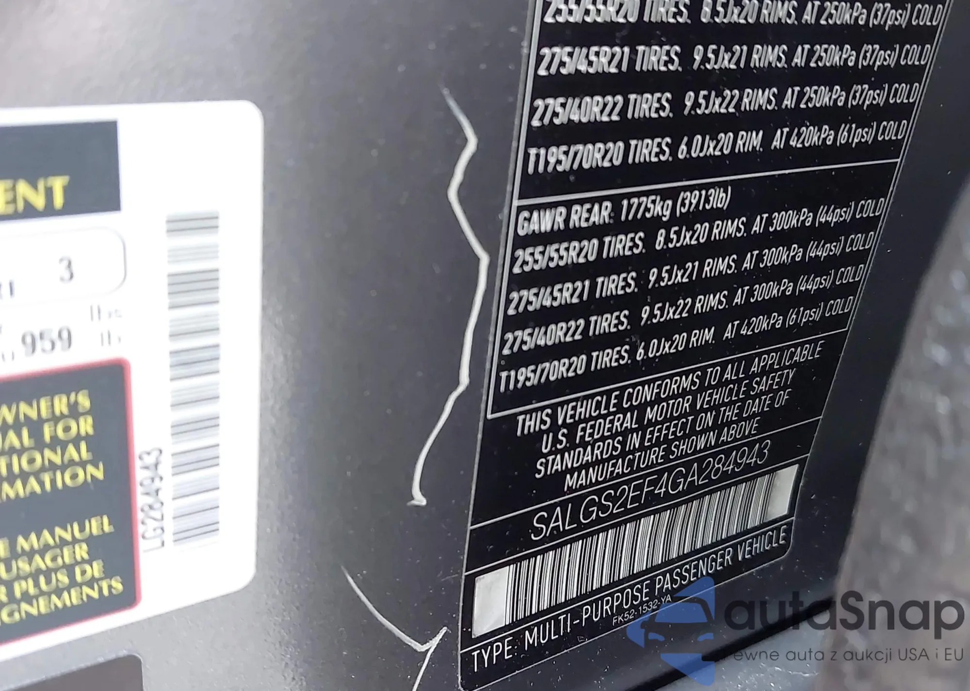 • VIN: SALGS2EF4GA284943