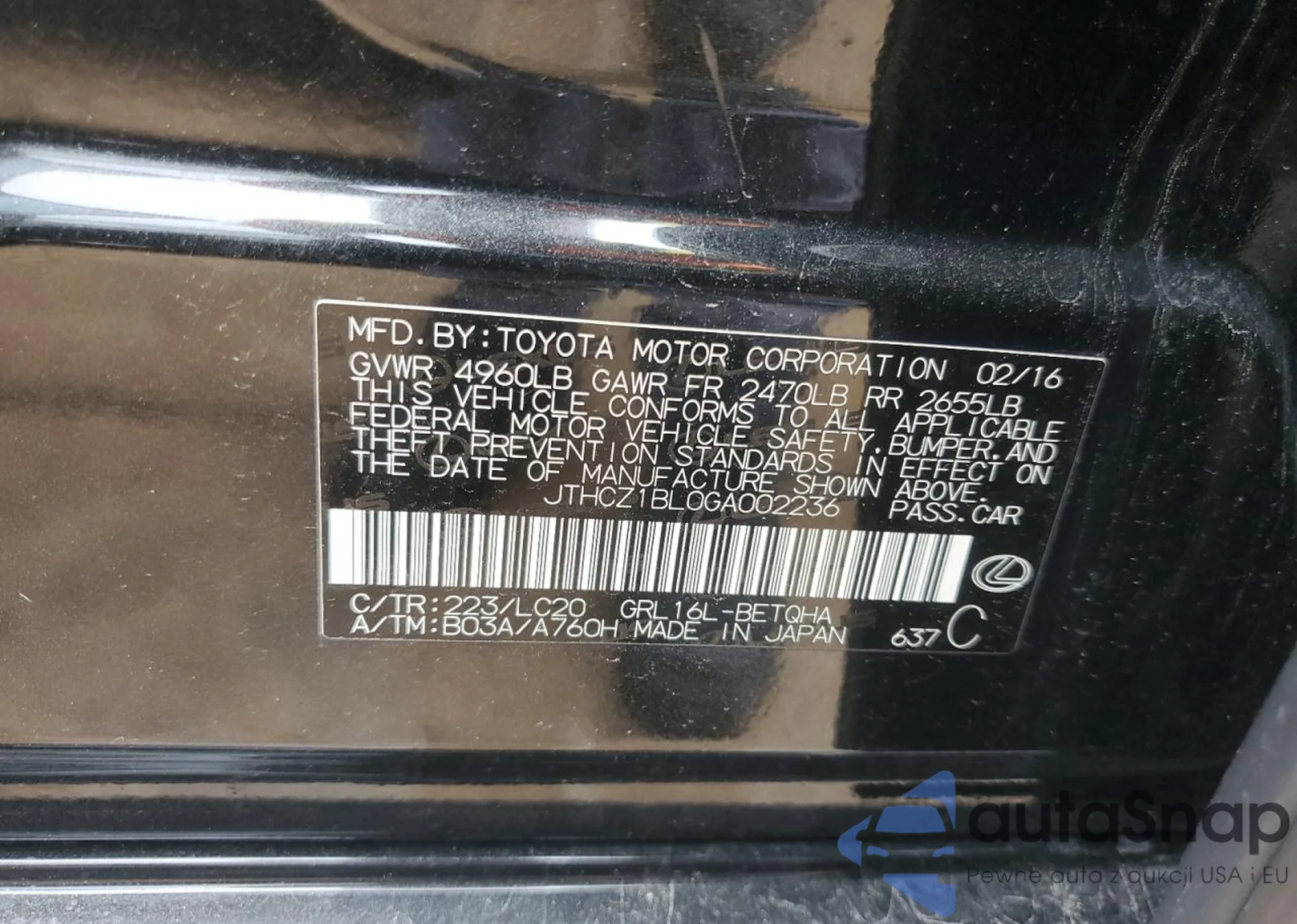 VIN: JTHCZ1BL0GA002236