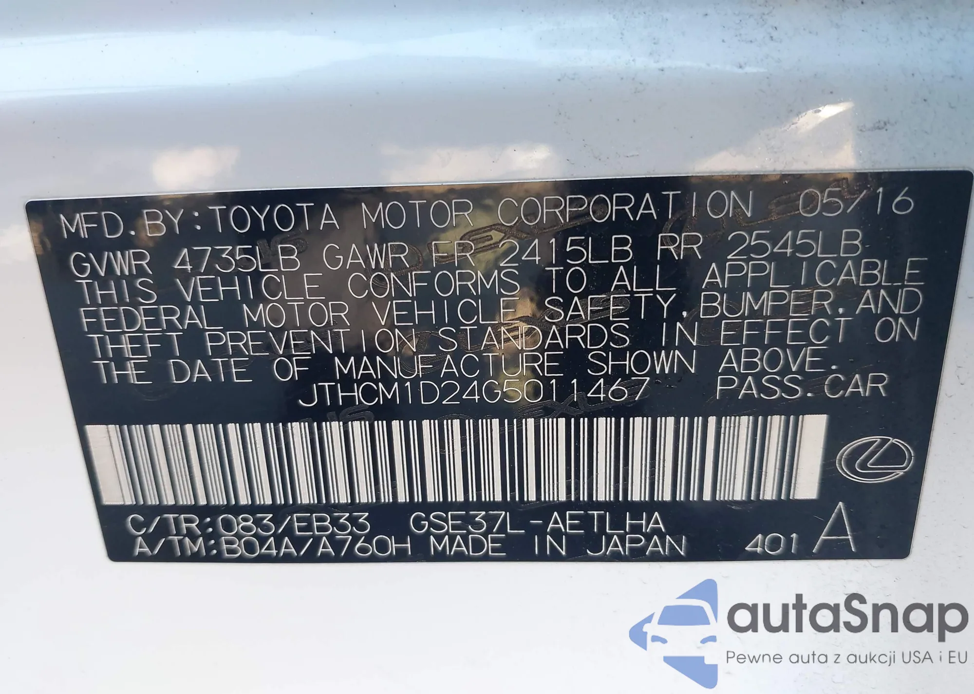 JTHCM1D24G5011467 IAAI
