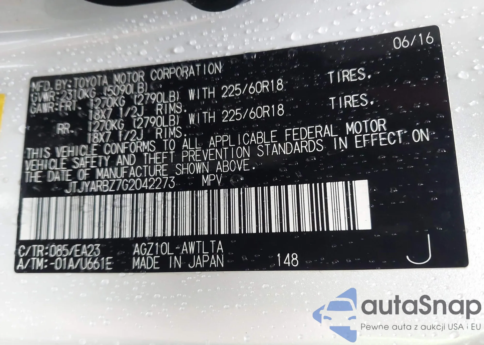 • VIN: JTJYARBZ7G2042273