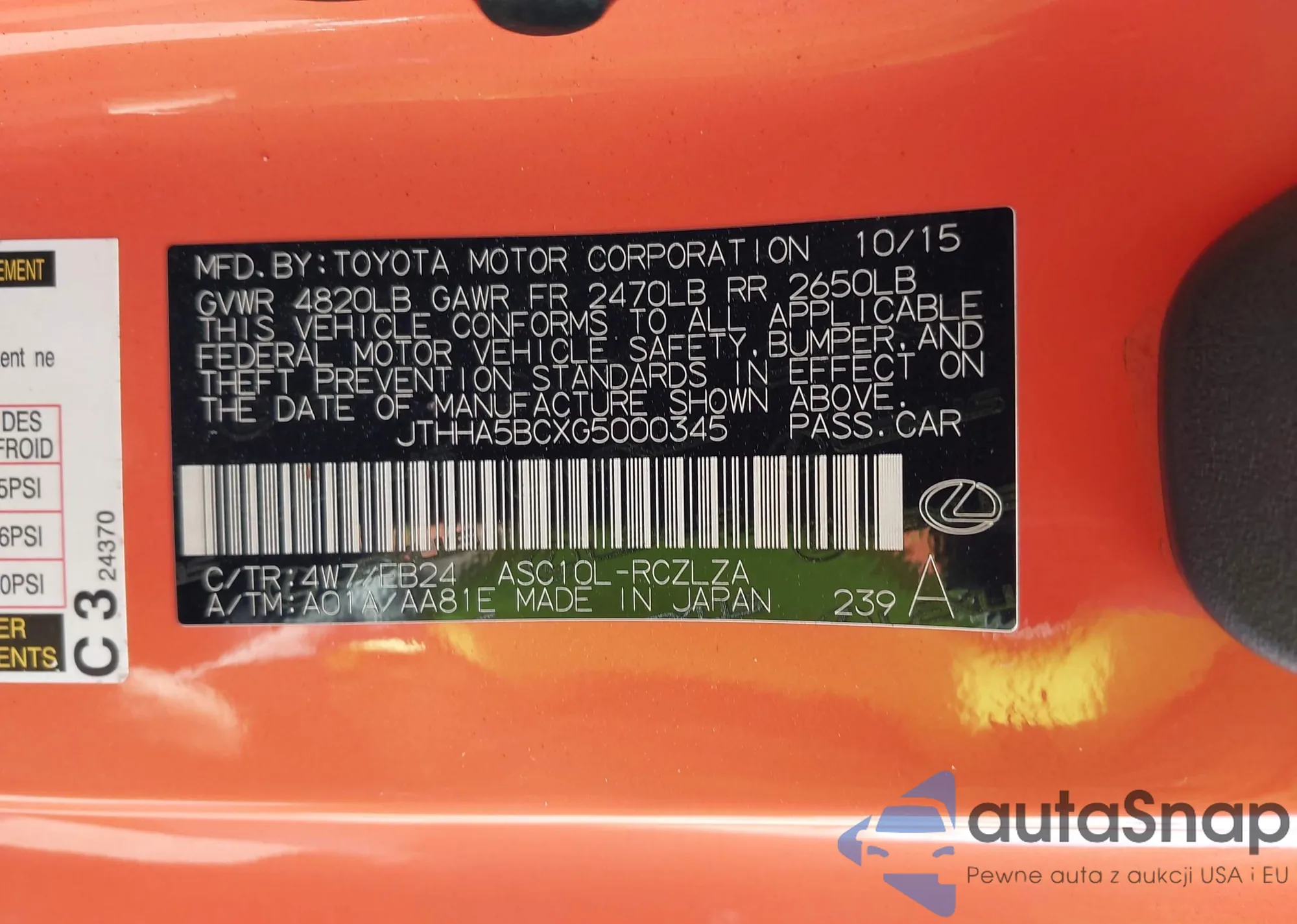 VIN: JTHHA5BCXG5000345