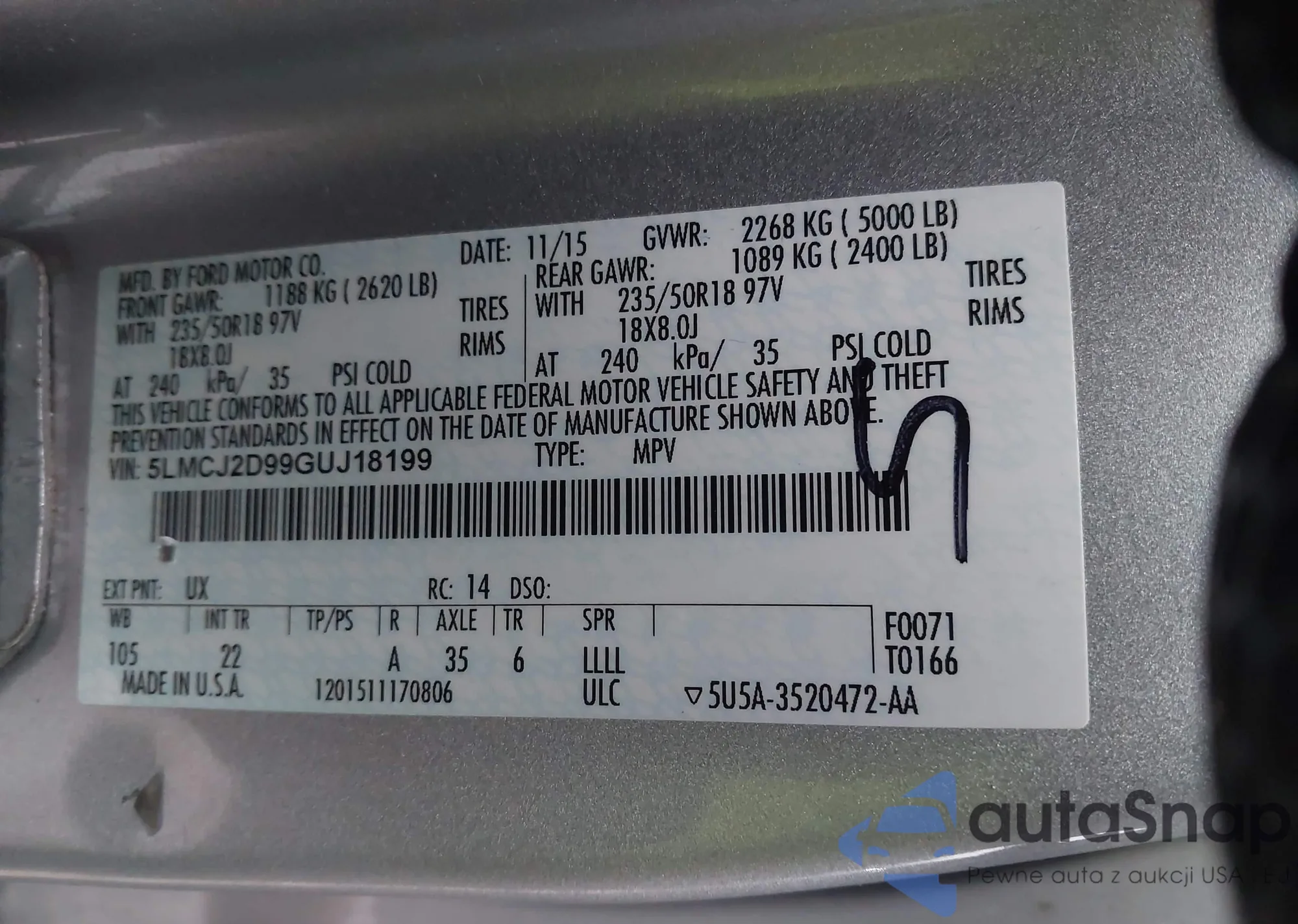 VIN: 5LMCJ2D99GUJ18199