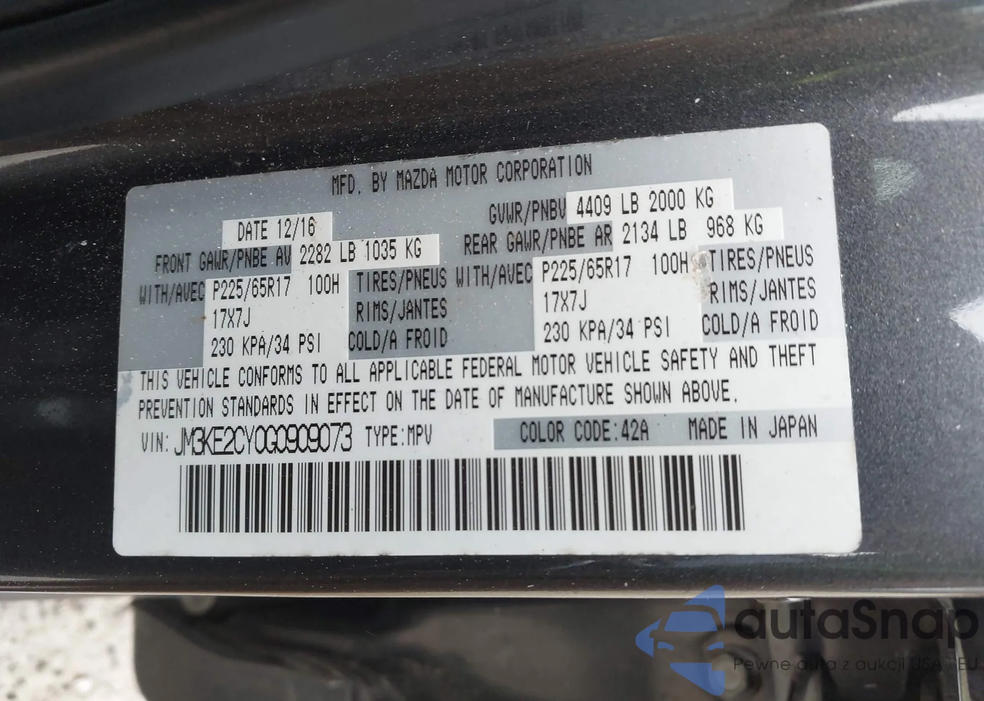 VIN: JM3KE2CY0G0909073