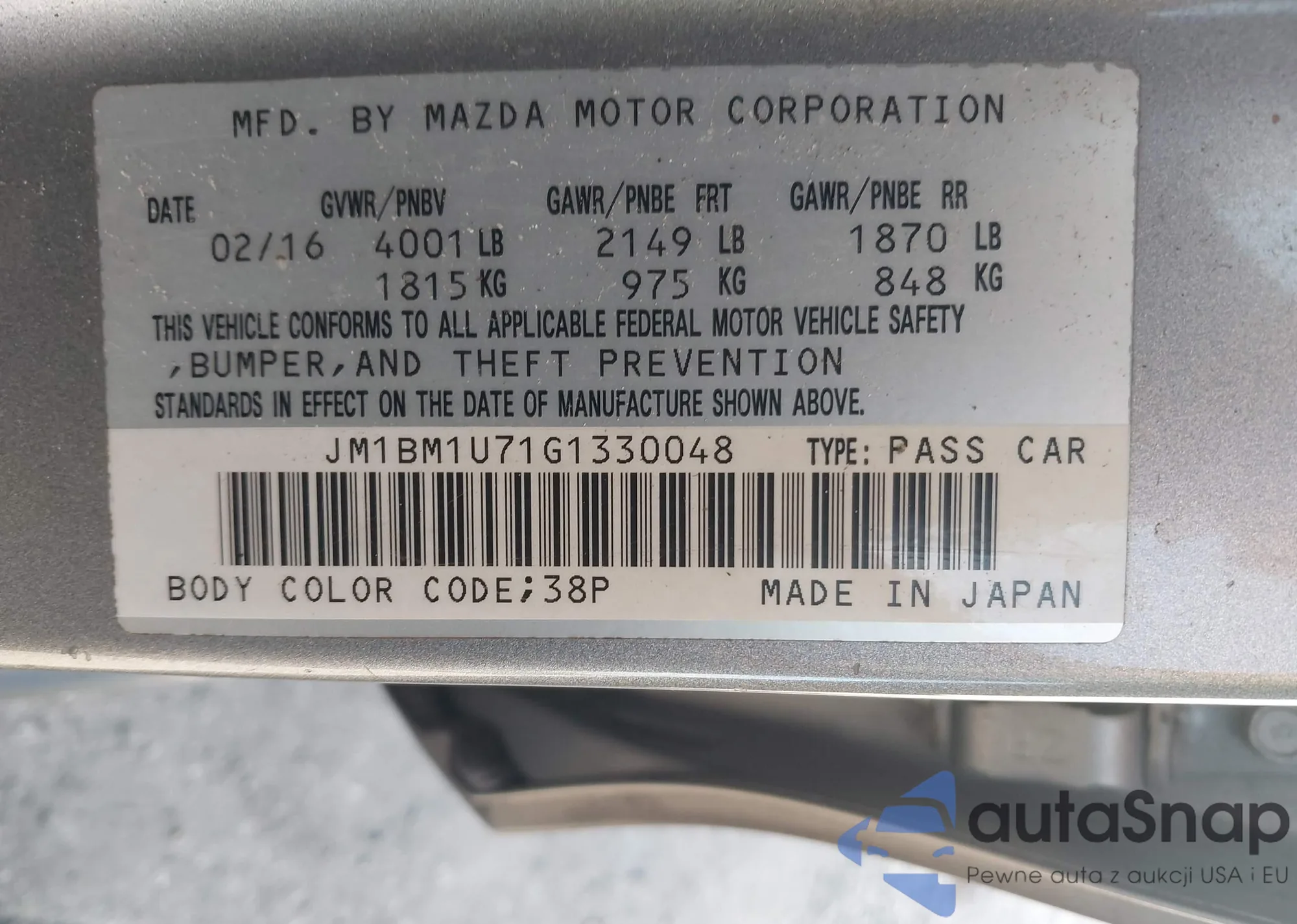 VIN: JM1BM1U71G1330048