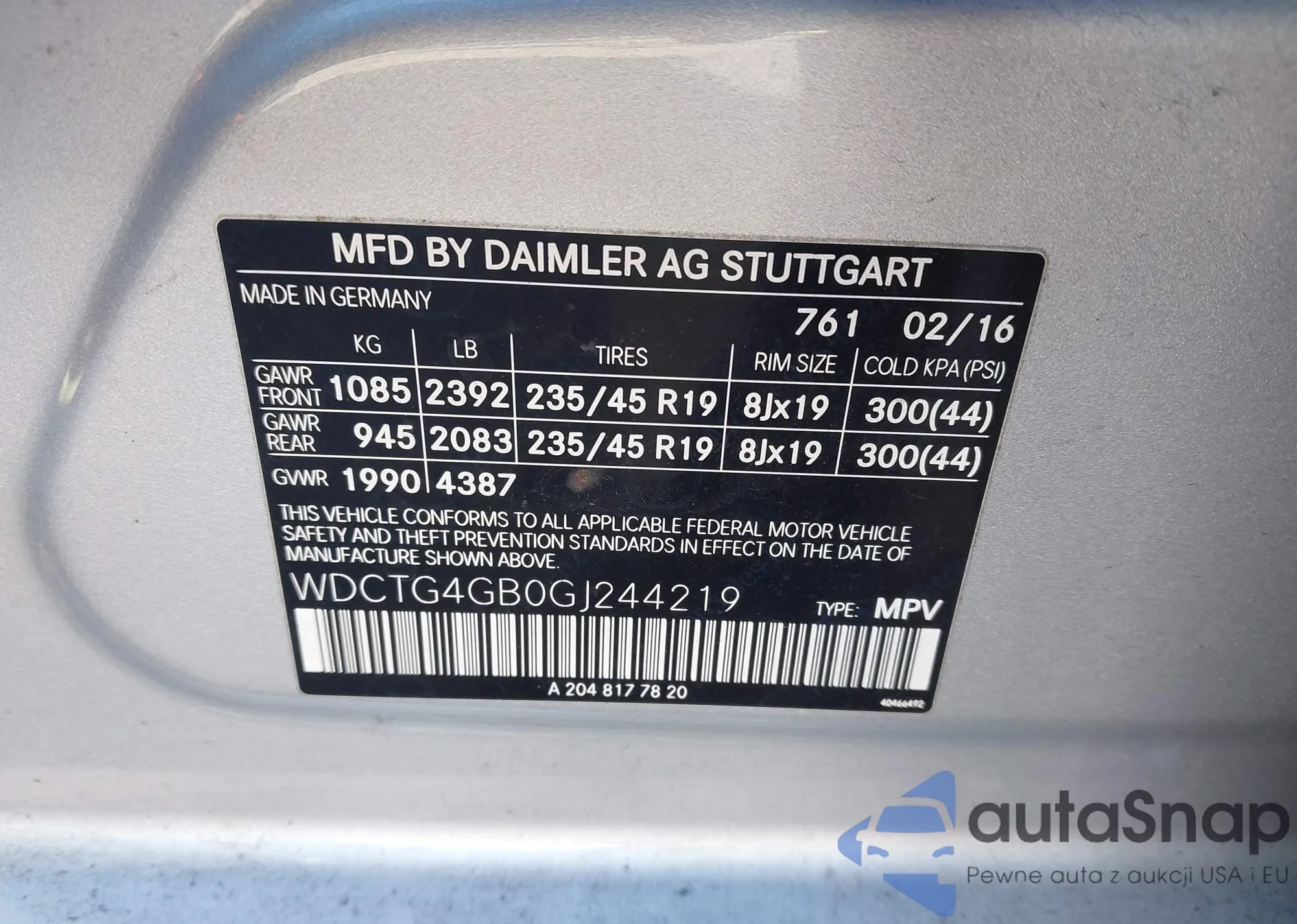 The car Mercedes-Benz GLA-klasse 2016 (VIN WDCTG4GB0GJ244219) has not been auctioned before. The documents are clean, and the mileage matches or is below the market average. Sold by an insurance company – we recommend purchase. Delivery to the port will take approx. 6–8 weeks.