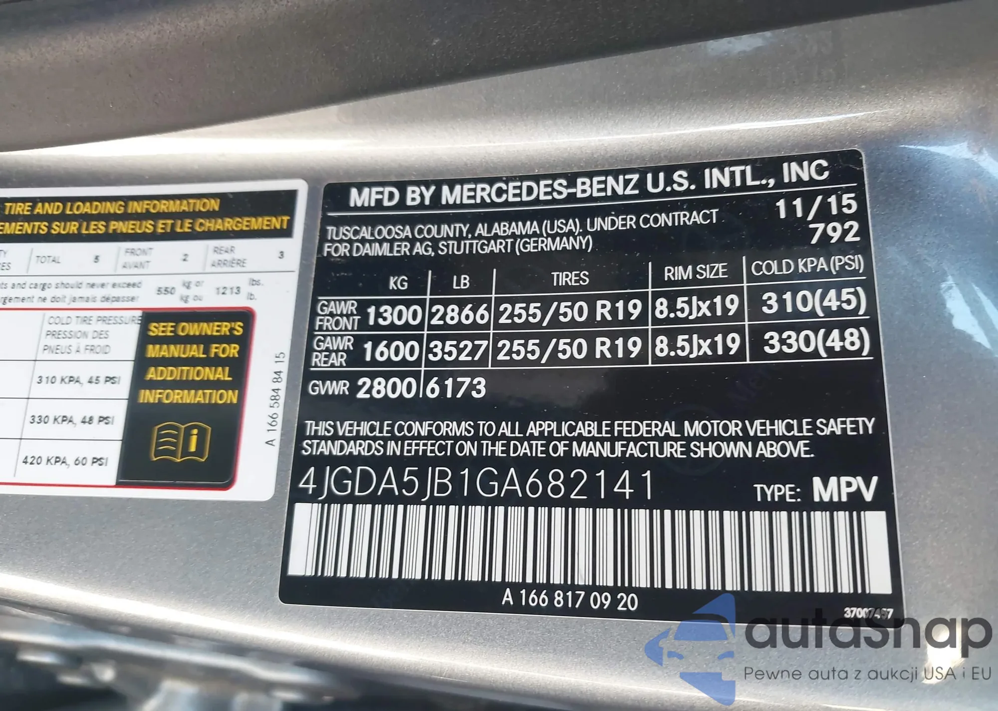 • VIN: 4JGDA5JB1GA682141