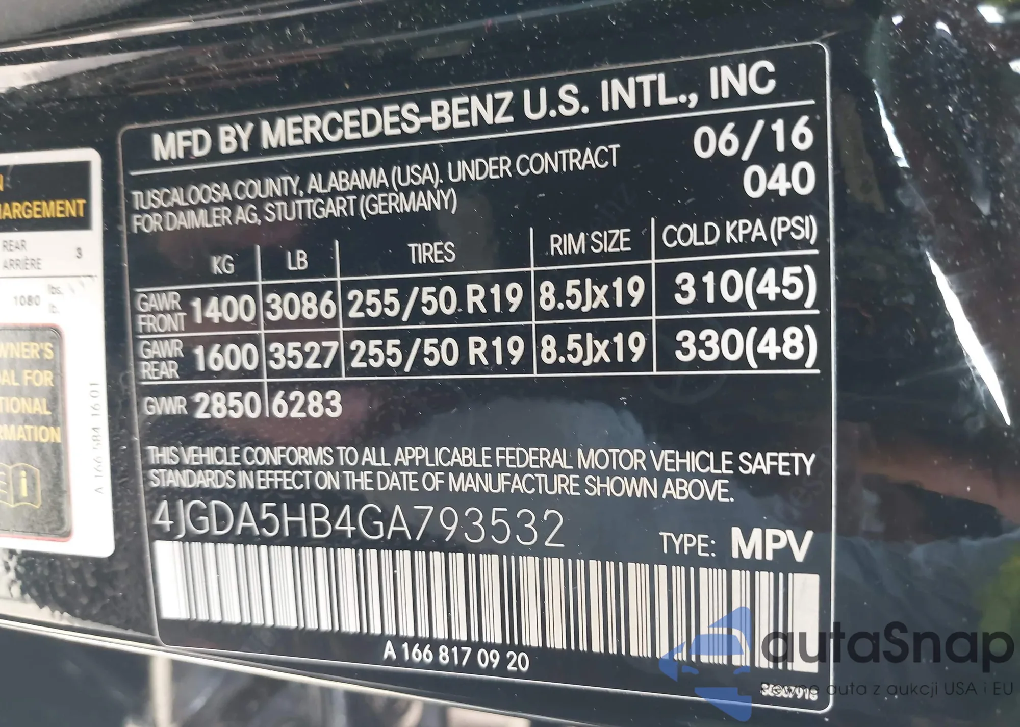 Document description: Salvage (Maryland)Export of the car from the USA is possible