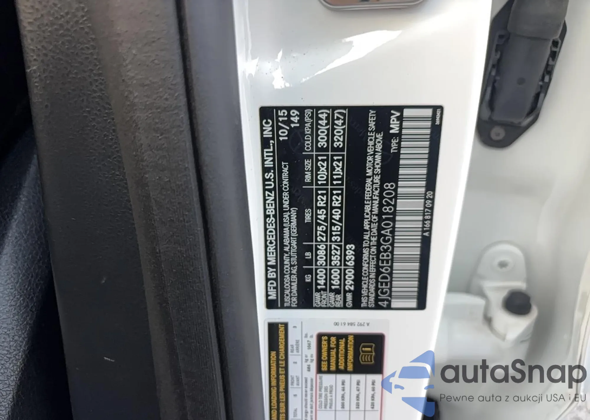 The car Mercedes-Benz GLE Coupe 2016 (VIN 4JGED6EB3GA018208) has documents that prevent registration. Export and registration may be difficult. Contact AutaSnap experts to find alternatives.