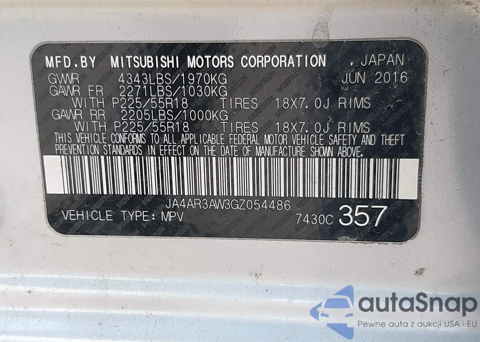 VIN: JA4AR3AW3GZ054486