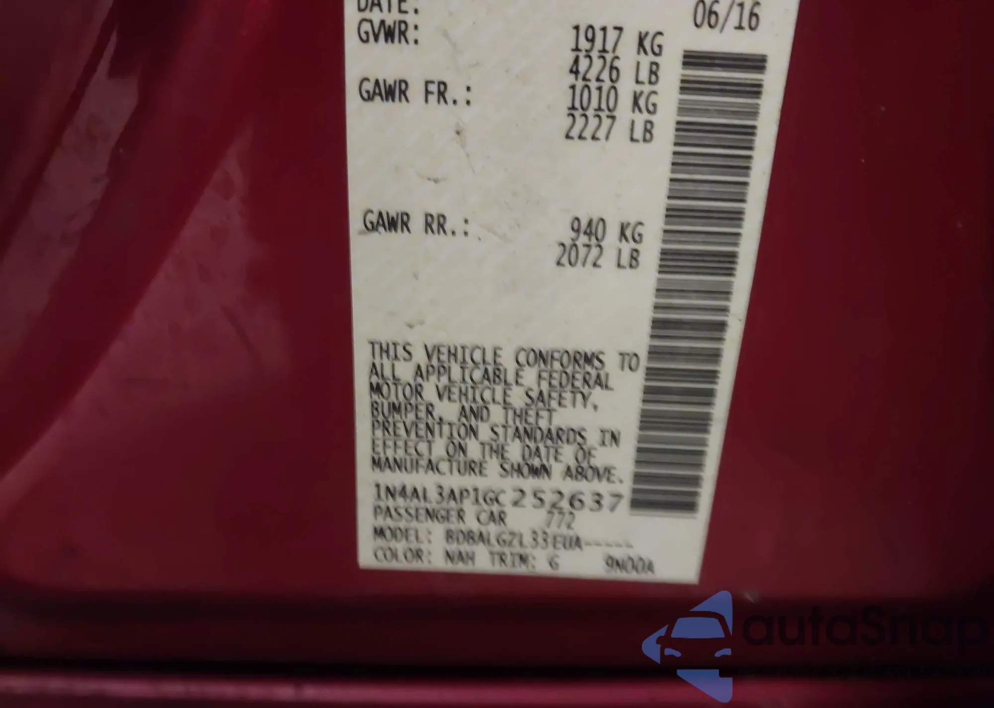 • VIN: 1N4AL3AP1GC252637