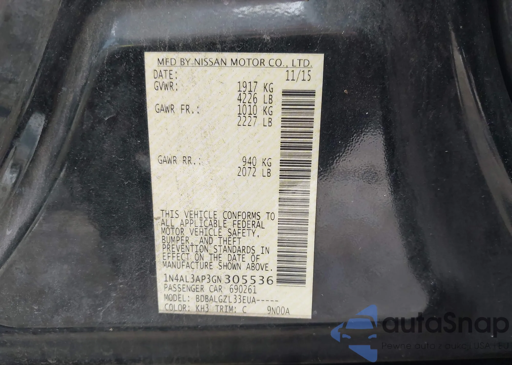 VIN: 1N4AL3AP3GN305536