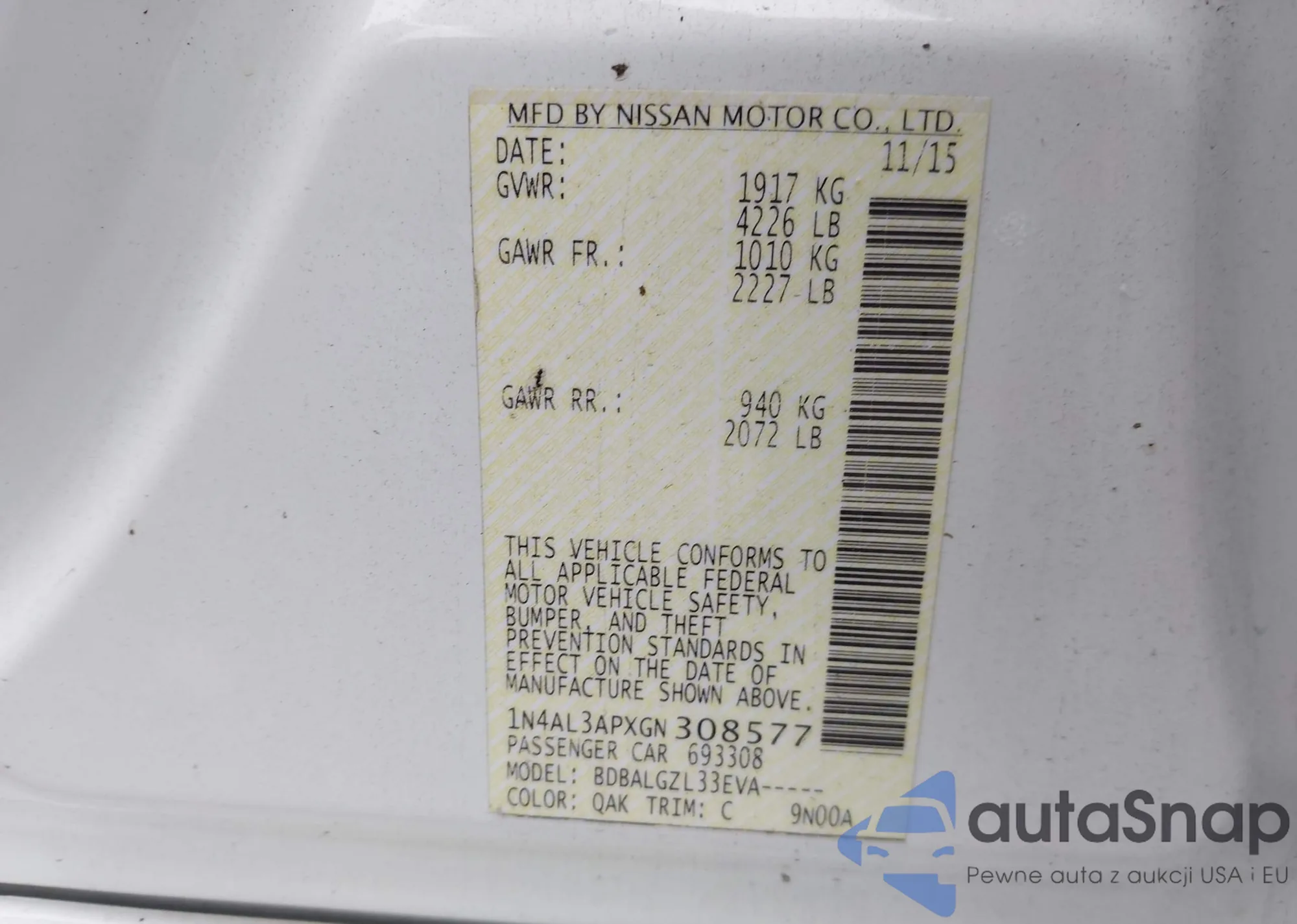 VIN: 1N4AL3APXGN308577