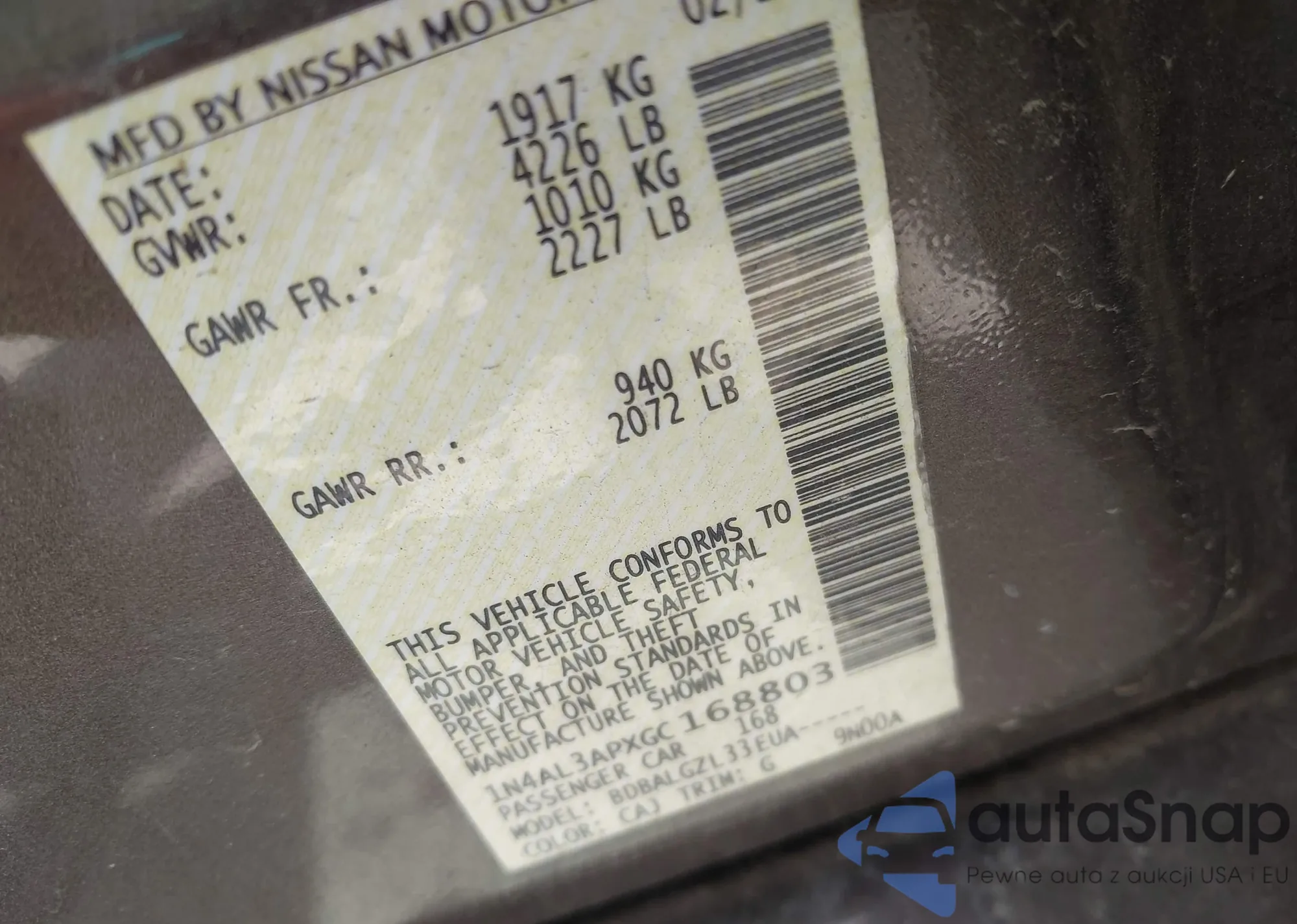 VIN: 1N4AL3APXGC168803