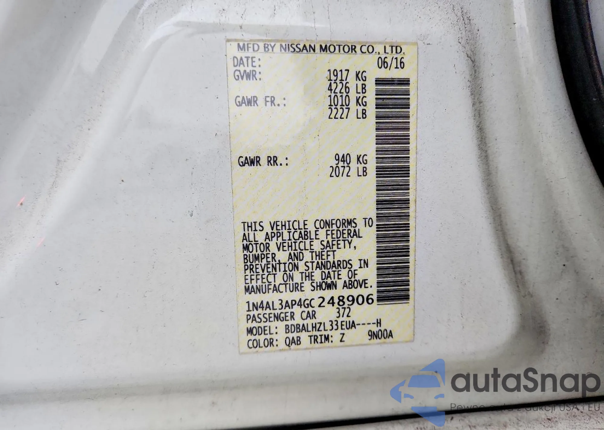 The car Nissan Altima 2016 (VIN 1N4AL3AP4GC248906) is sold by an unverified seller. We recommend checking the Carfax report and confirming registration possibilities before purchase.