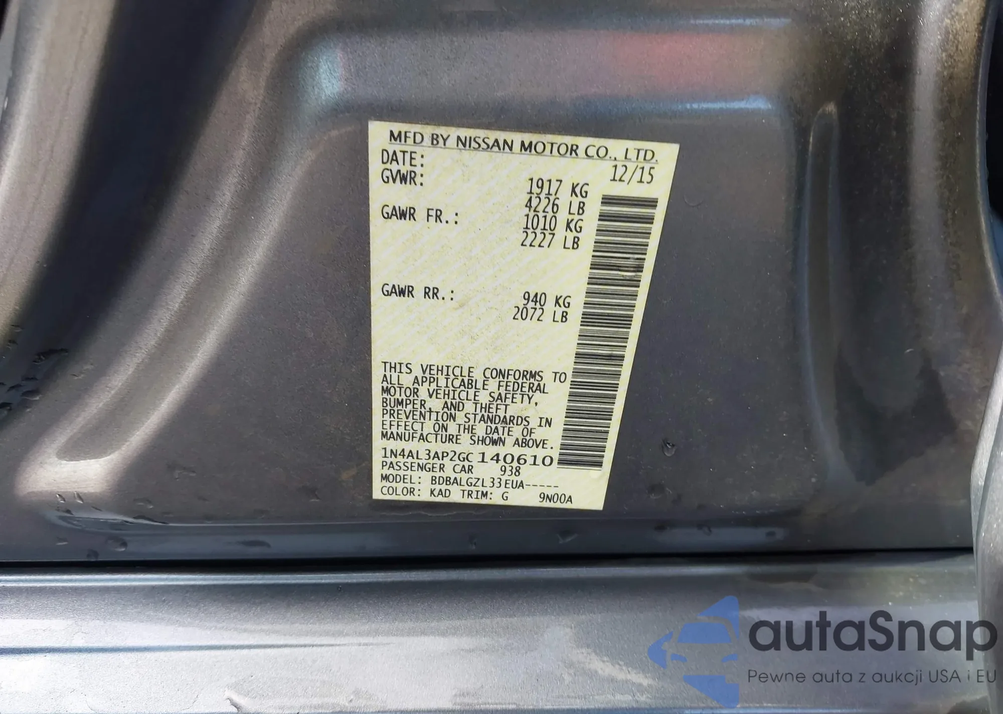 The car Nissan Altima 2016 (VIN 1N4AL3AP2GC140610) has not been auctioned before. The documents are clean, and the mileage matches or is below the market average. Sold by an insurance company – we recommend purchase. Delivery to the port will take approx. 6–8 weeks.
