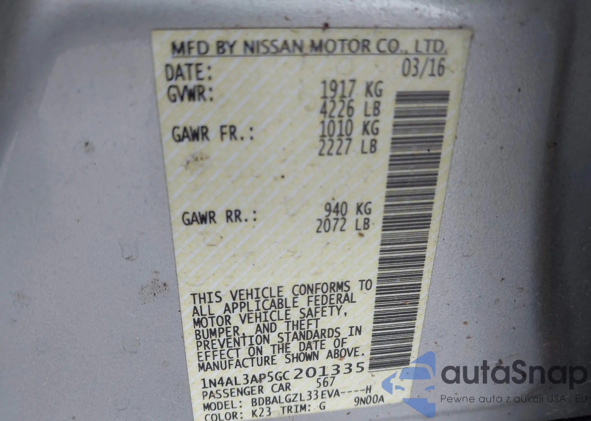 VIN: 1N4AL3AP5GC201335