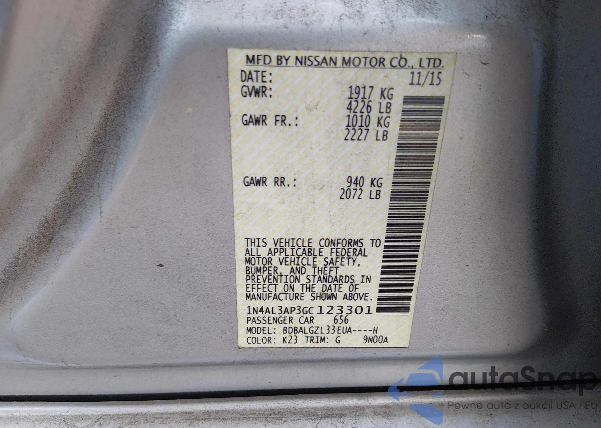 VIN: 1N4AL3AP3GC123301