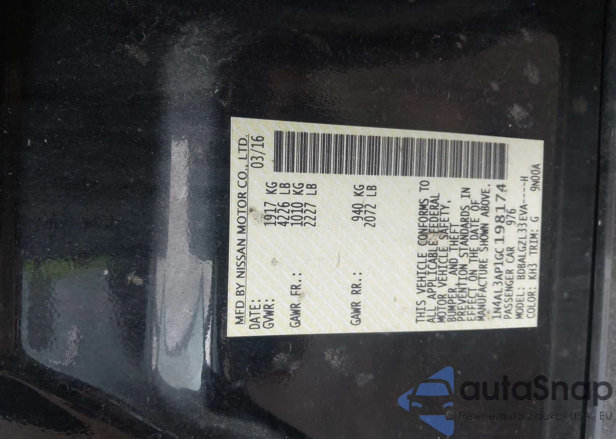 VIN: 1N4AL3AP1GC198174