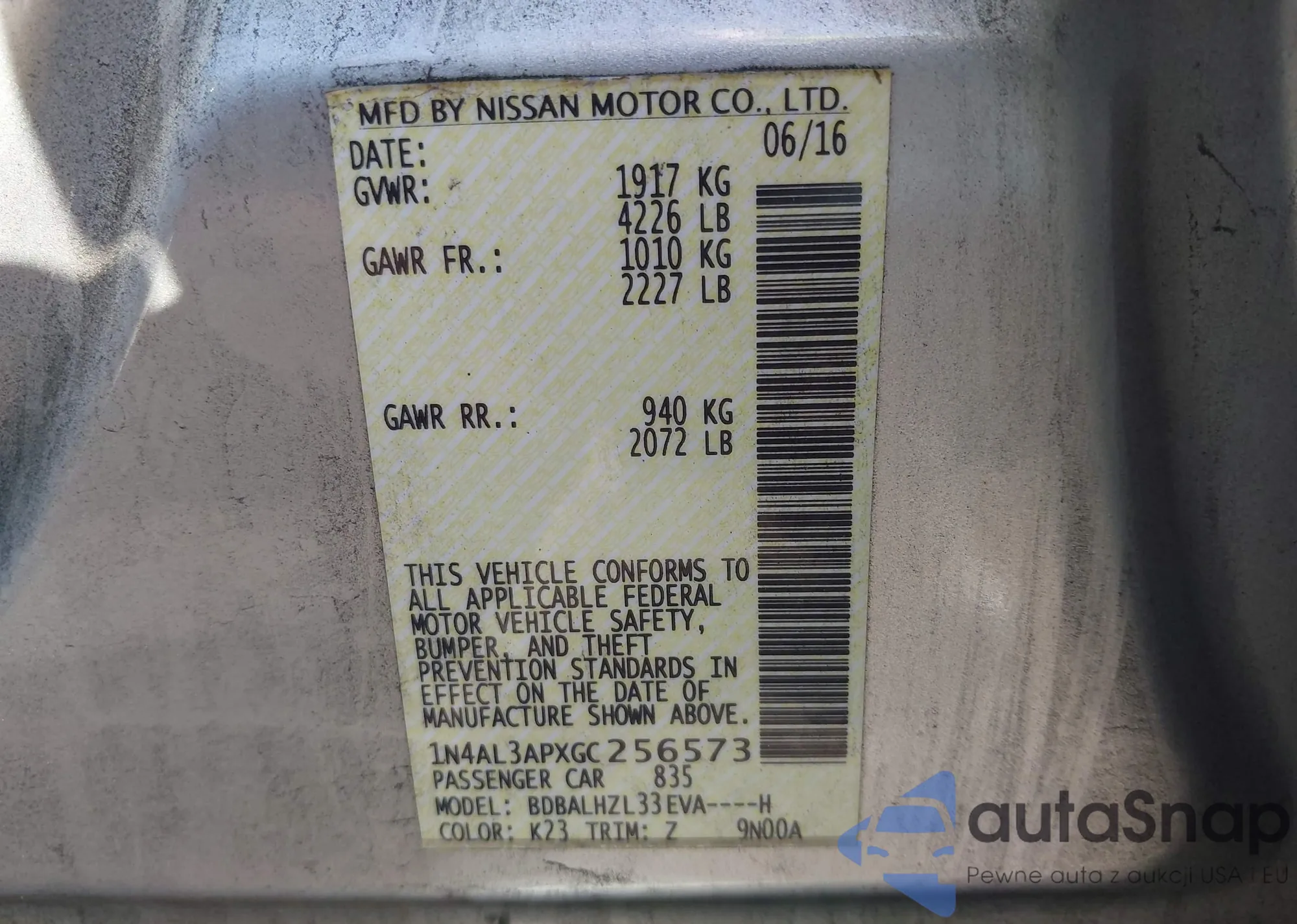 VIN: 1N4AL3APXGC256573
