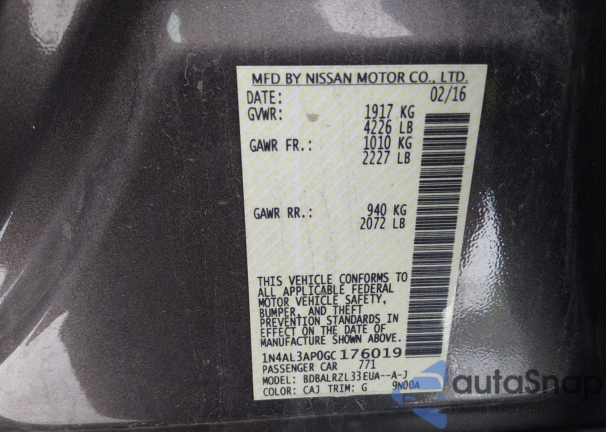 VIN: 1N4AL3AP0GC176019