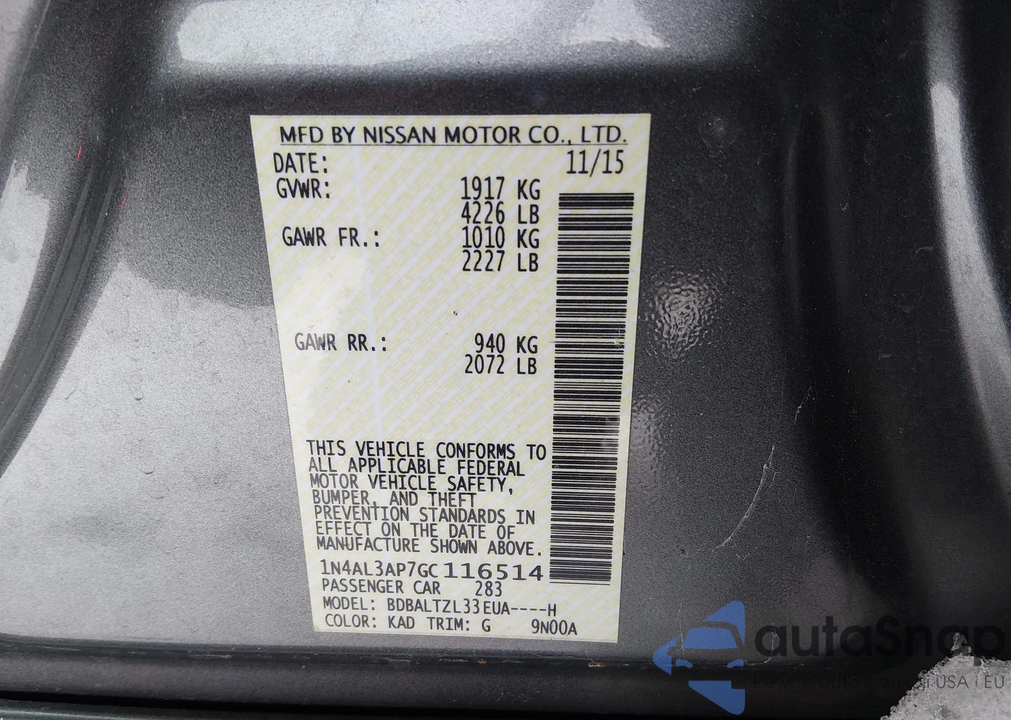 VIN: 1N4AL3AP7GC116514
