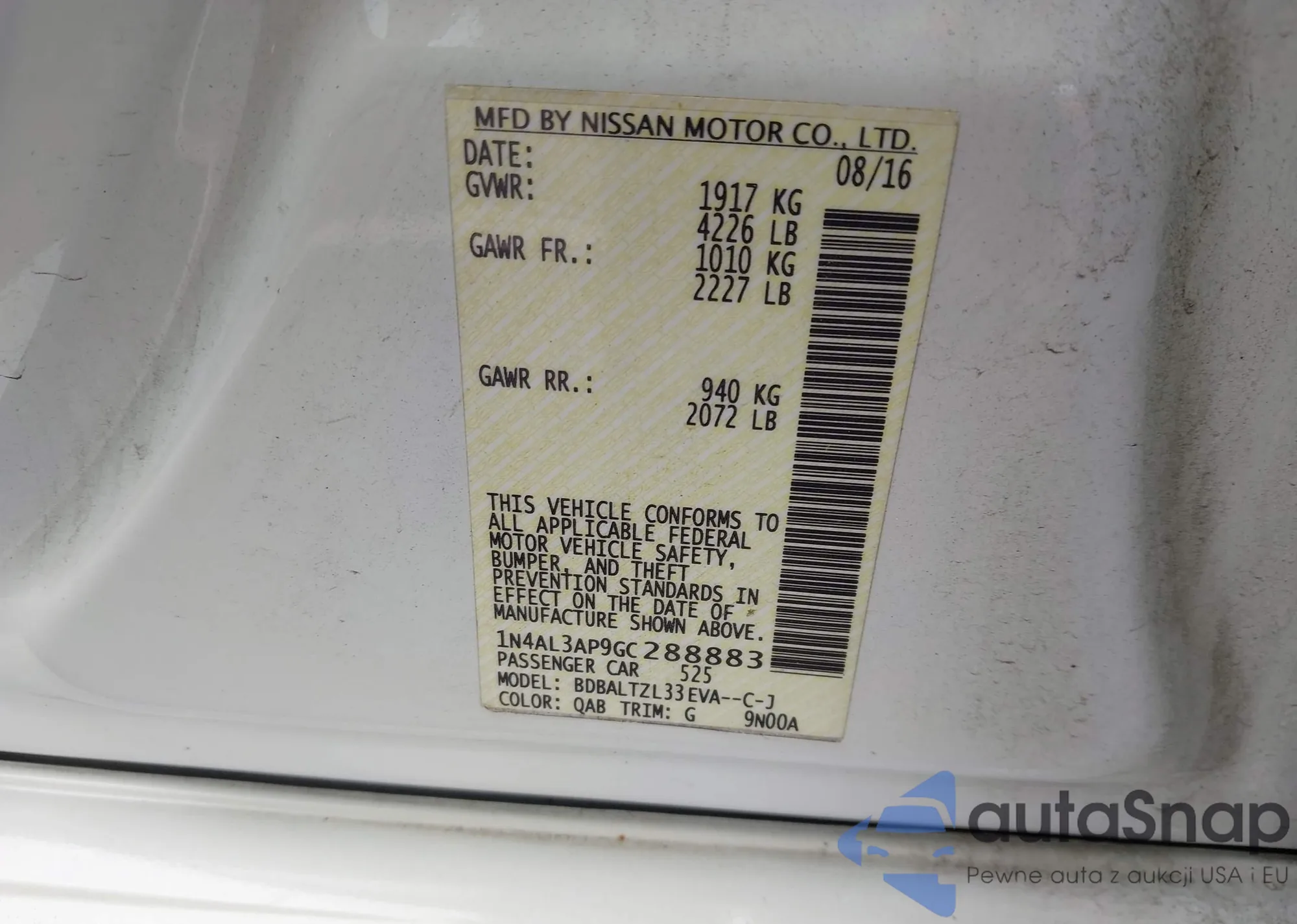 VIN: 1N4AL3AP9GC288883