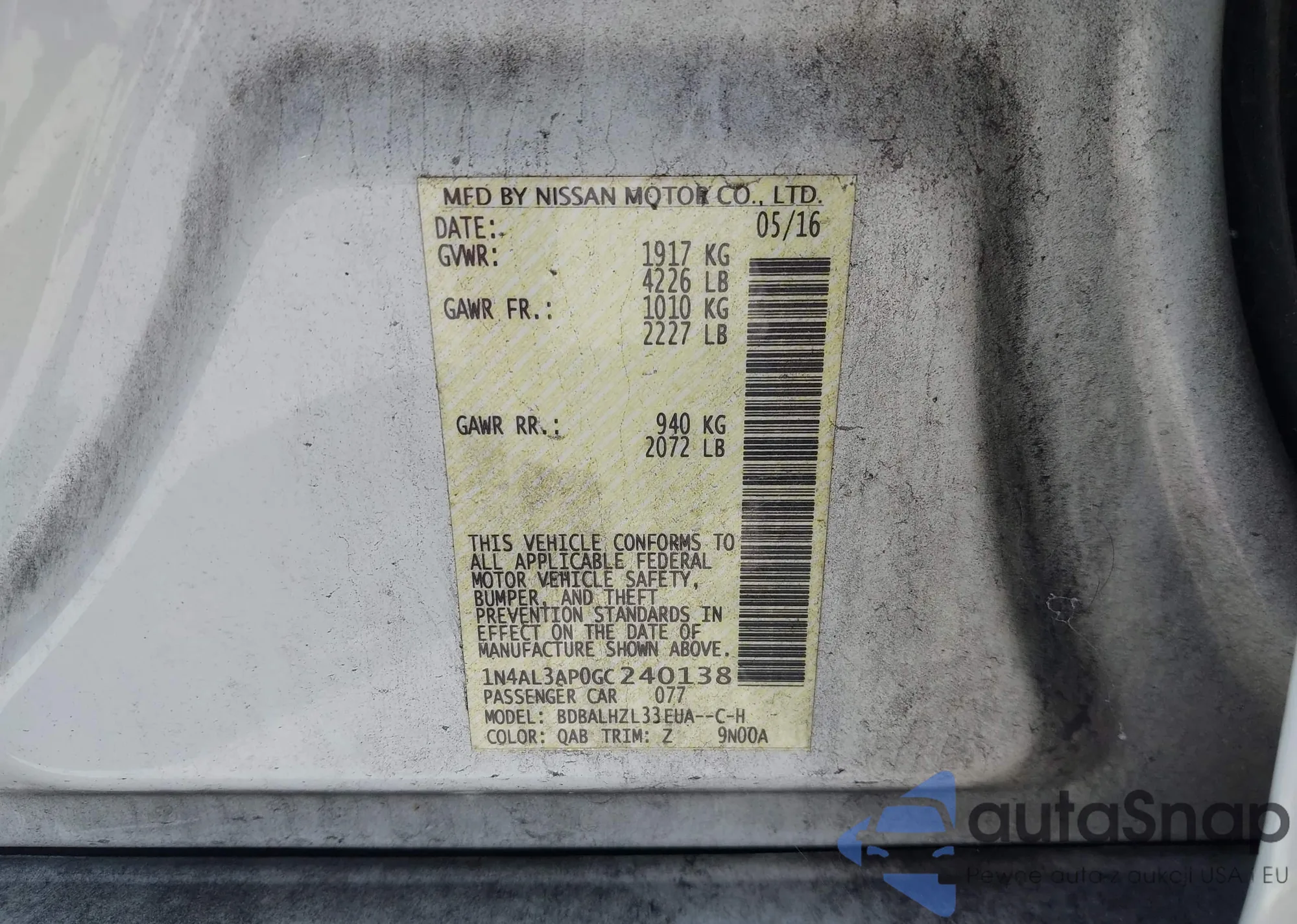 VIN: 1N4AL3AP0GC240138