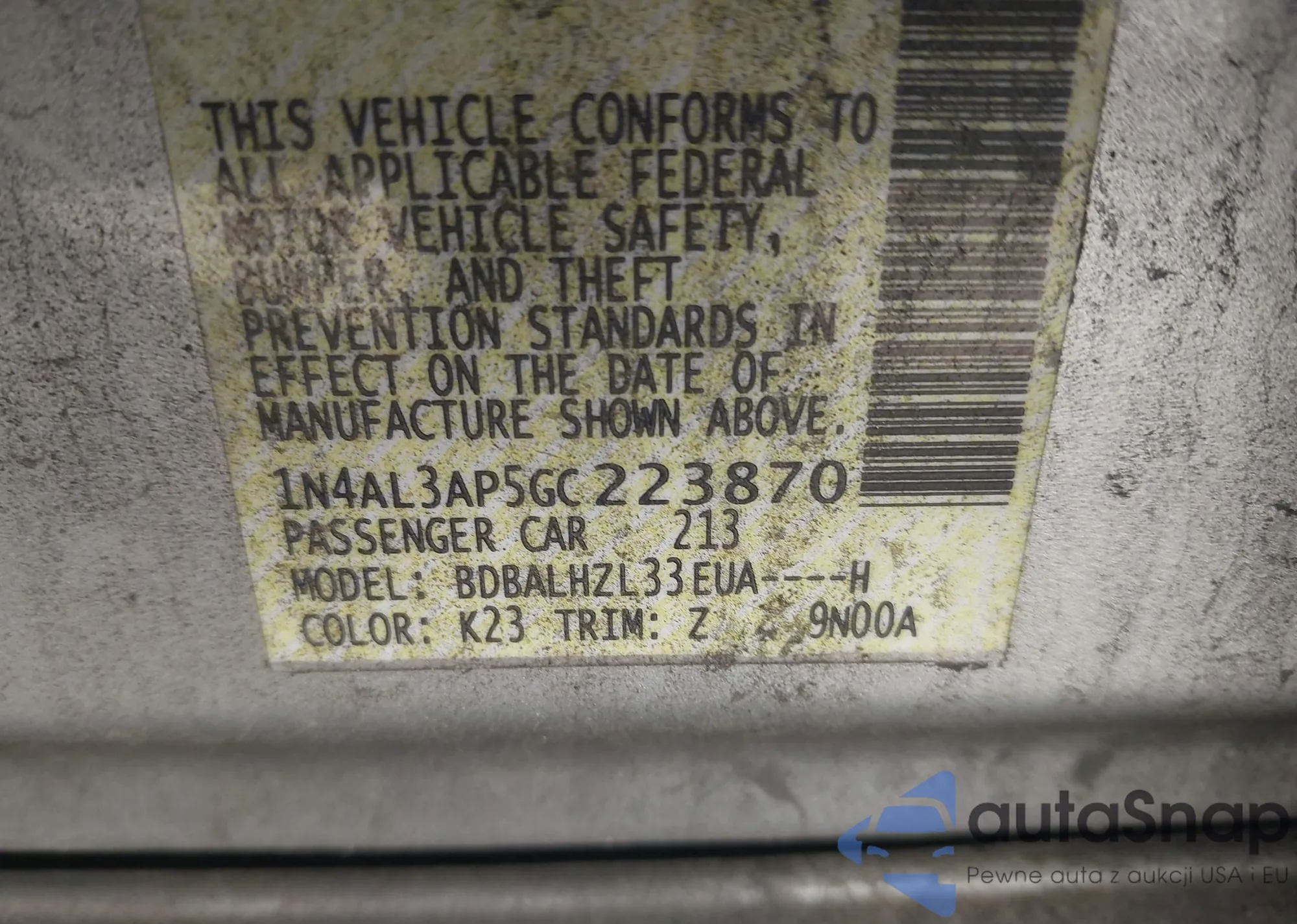 VIN: 1N4AL3AP5GC223870