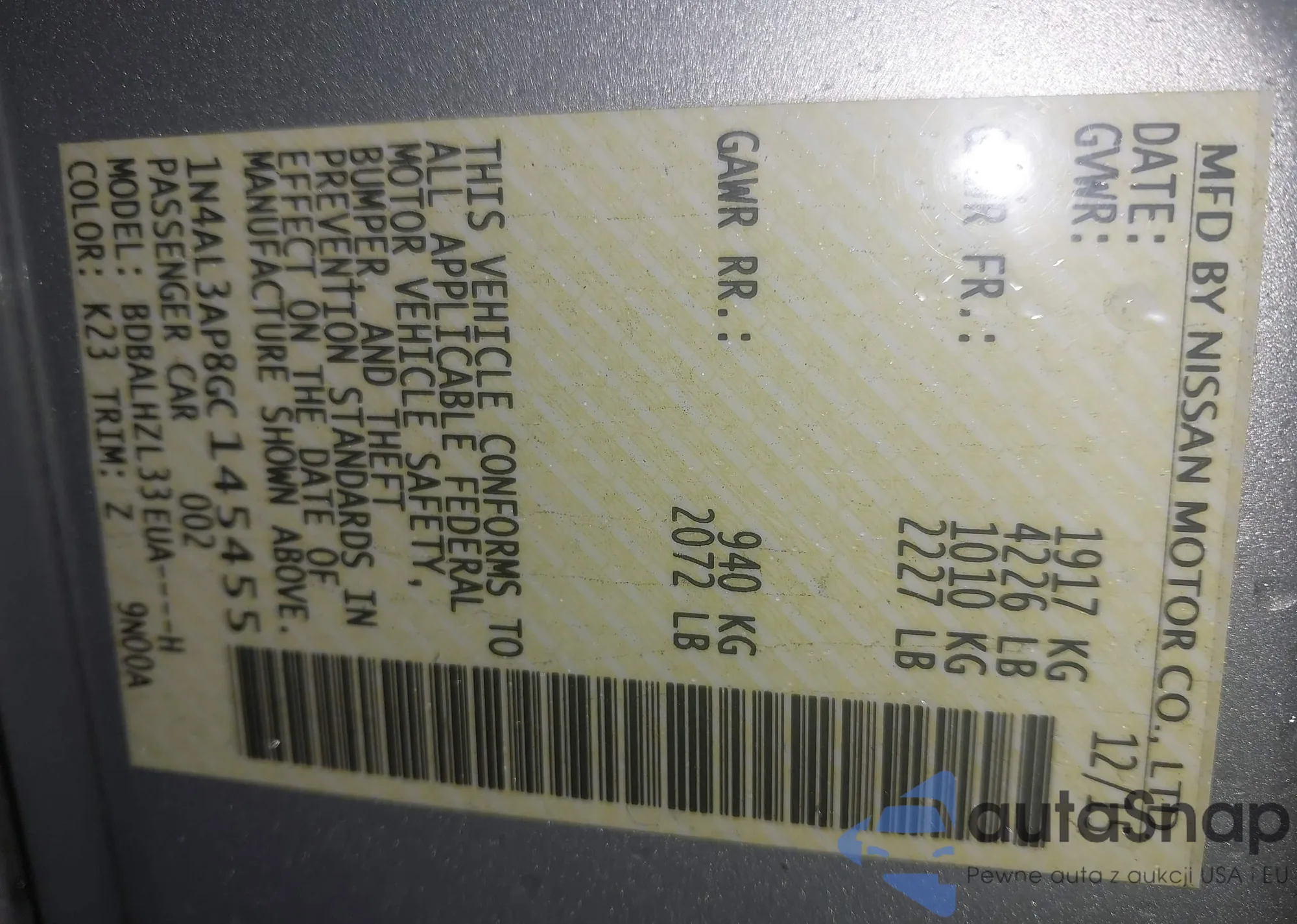 • VIN: 1N4AL3AP8GC145455