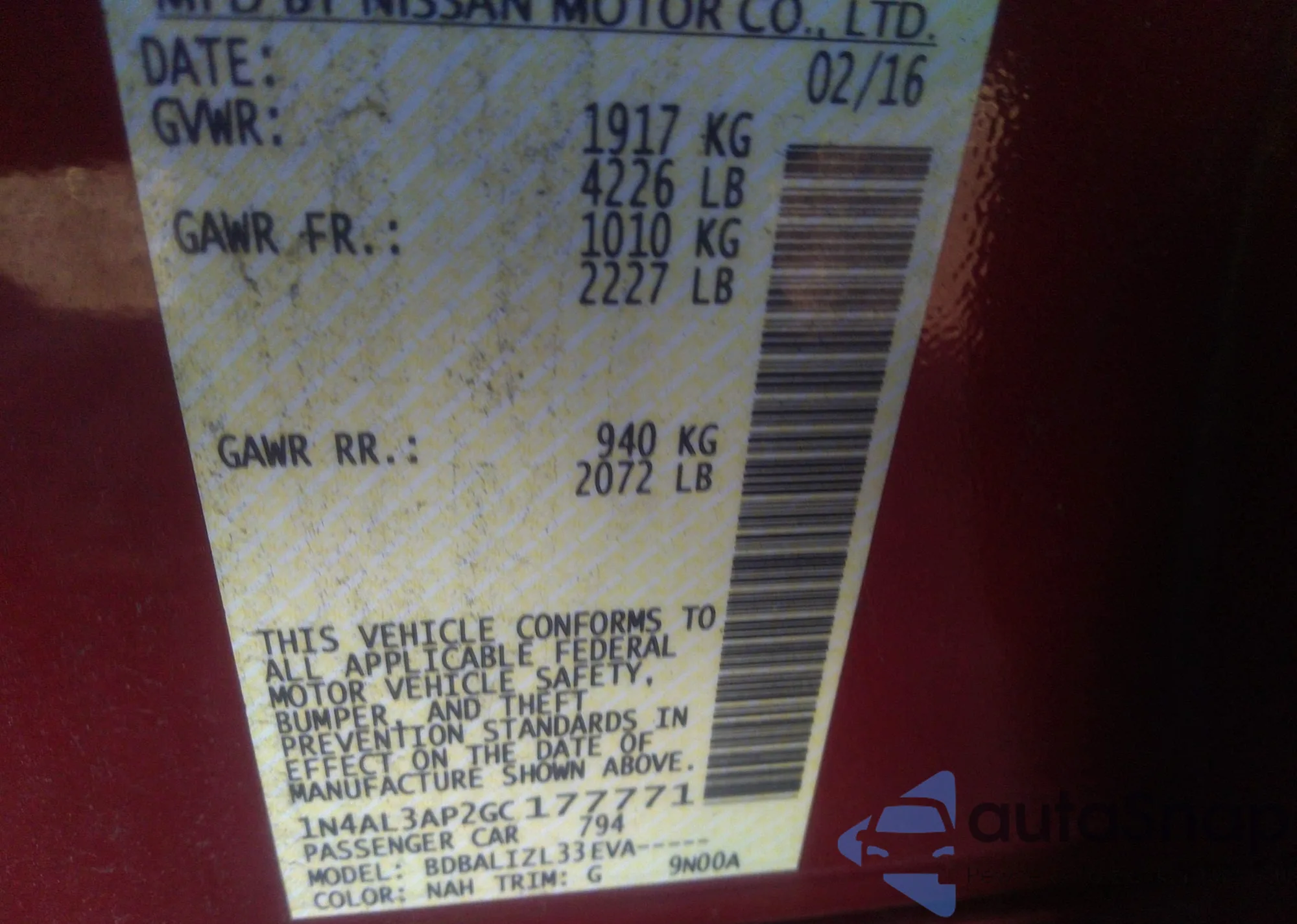 VIN: 1N4AL3AP2GC177771