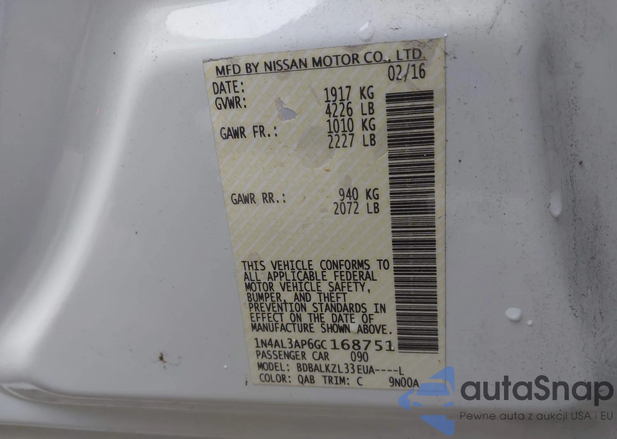 VIN: 1N4AL3AP6GC168751