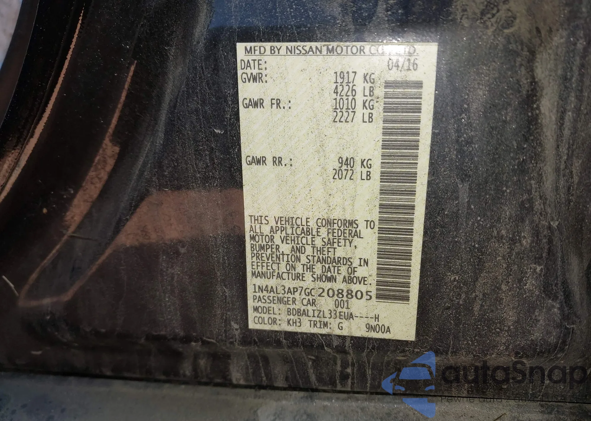 VIN: 1N4AL3AP7GC208805