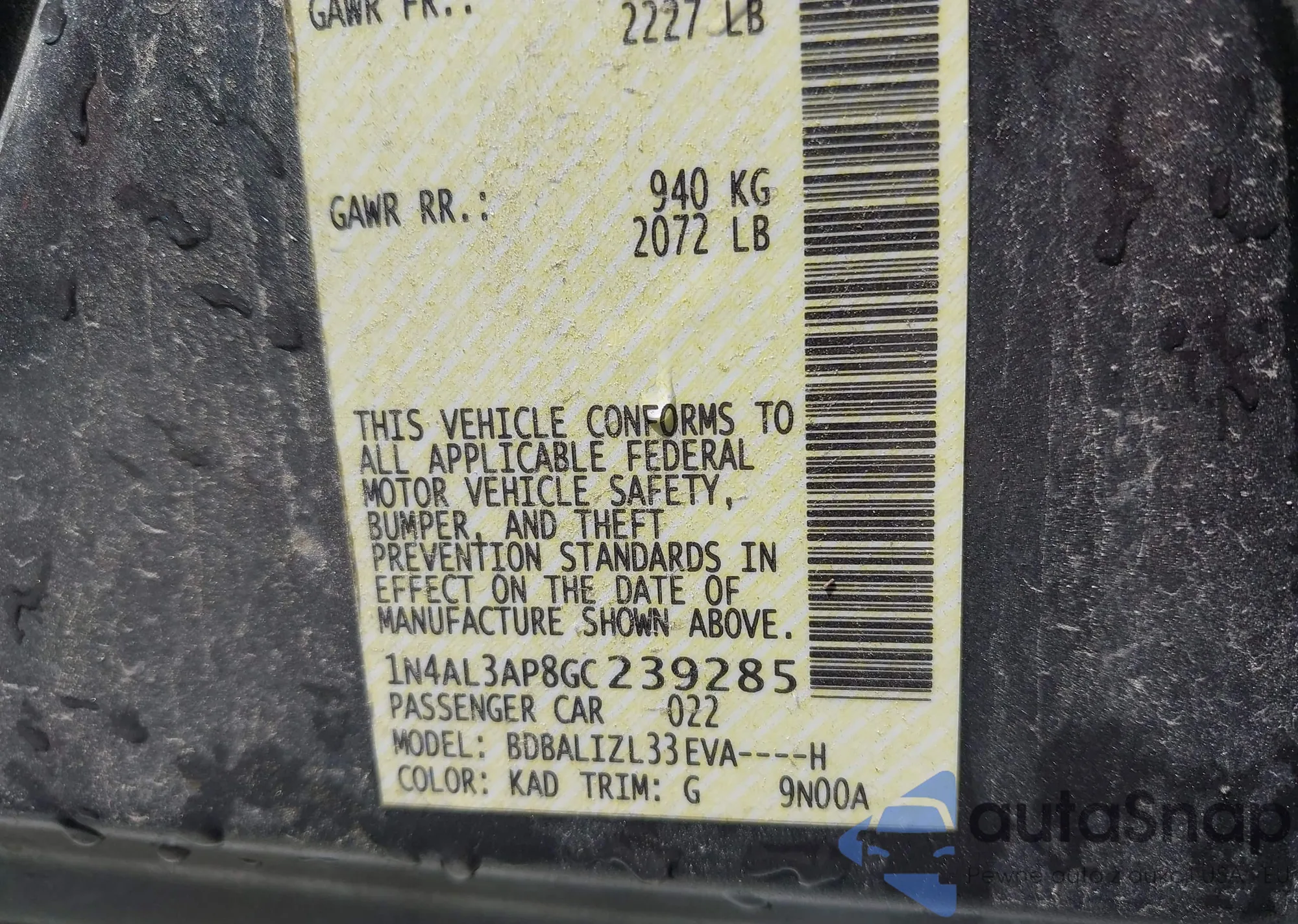VIN: 1N4AL3AP8GC239285