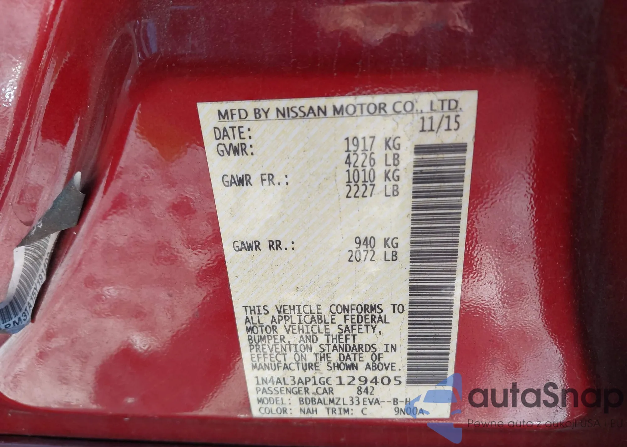 VIN: 1N4AL3AP1GC129405