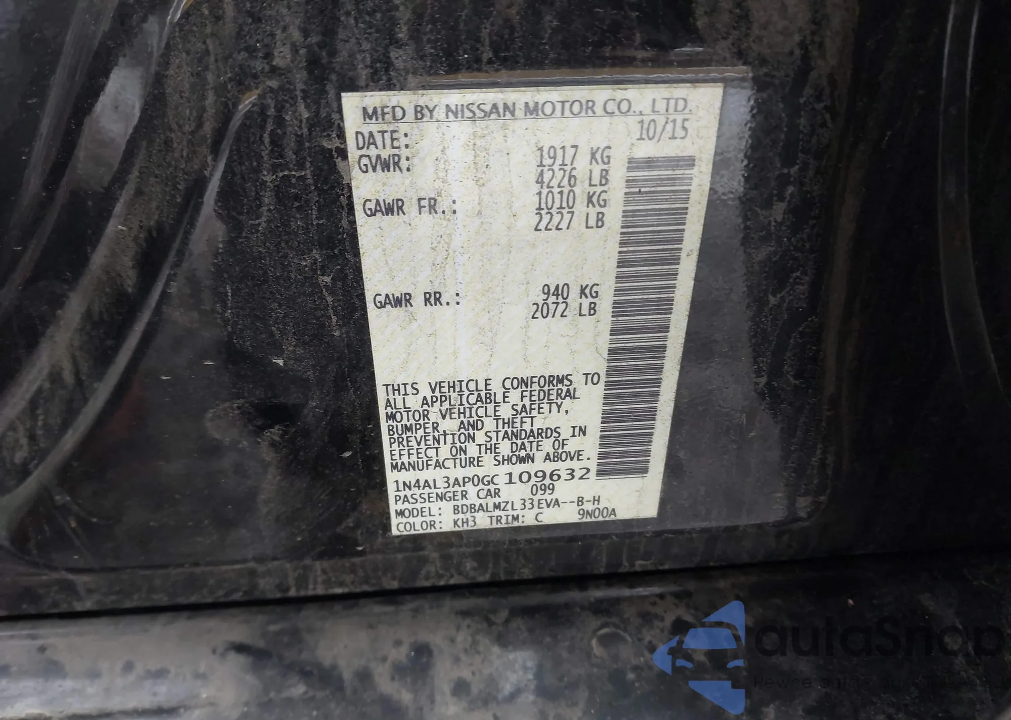 • VIN: 1N4AL3AP0GC109632