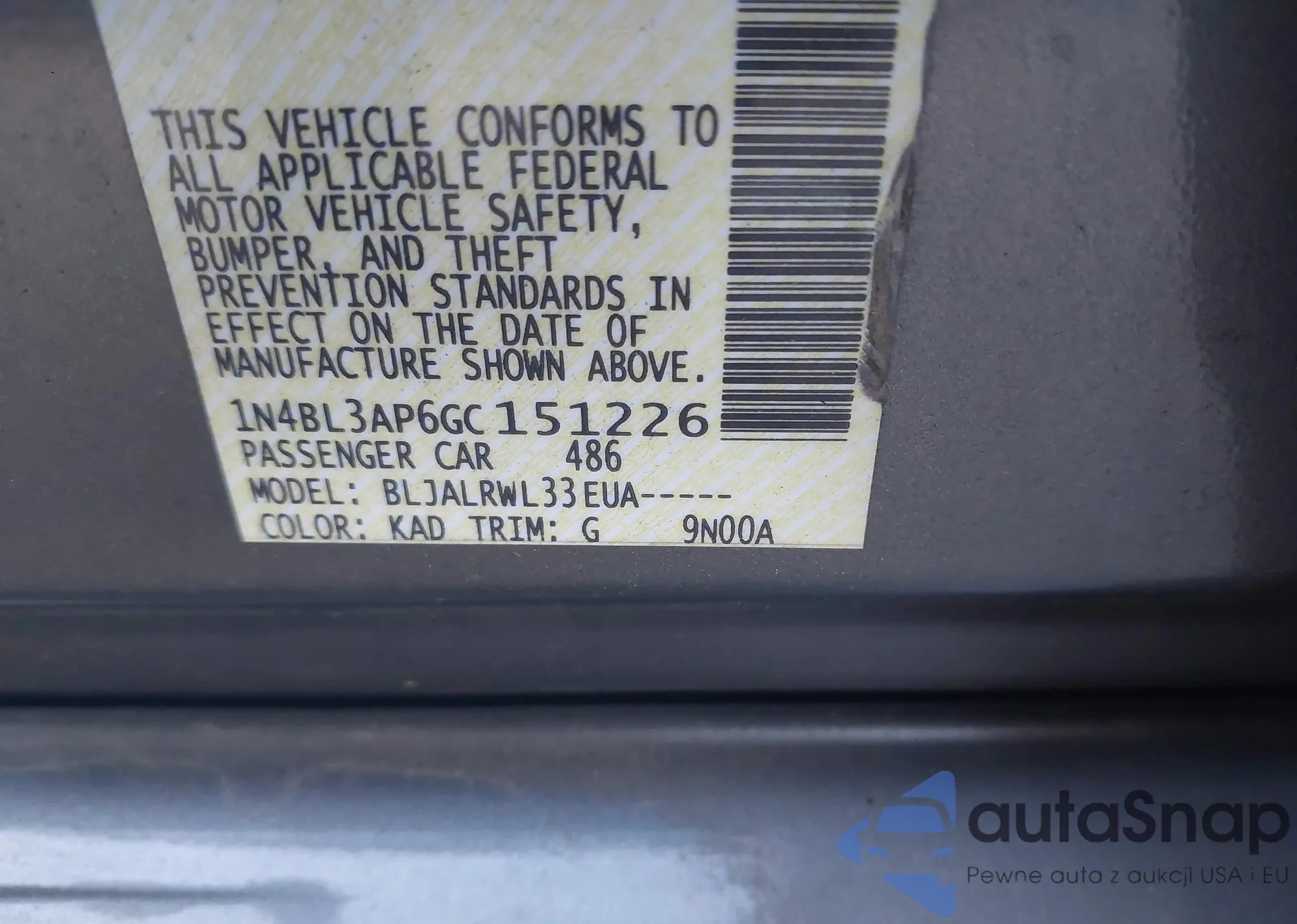 VIN: 1N4BL3AP6GC151226