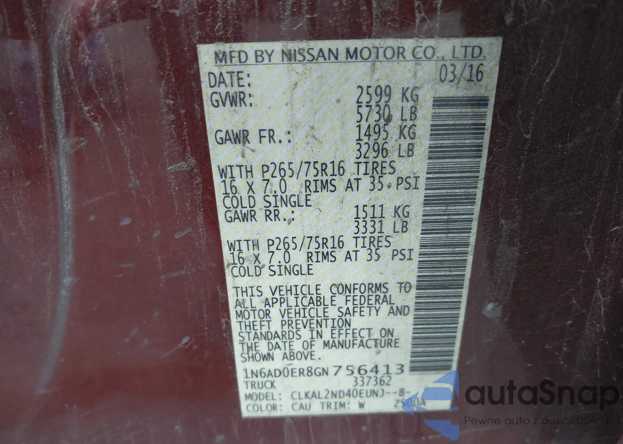 The car Nissan Navara (Frontier) 2016 (VIN 1N6AD0ER8GN756413) has already been auctioned 2 times and/or is sold by an unverified seller. We recommend checking the Carfax report and confirming registration possibilities before purchase.