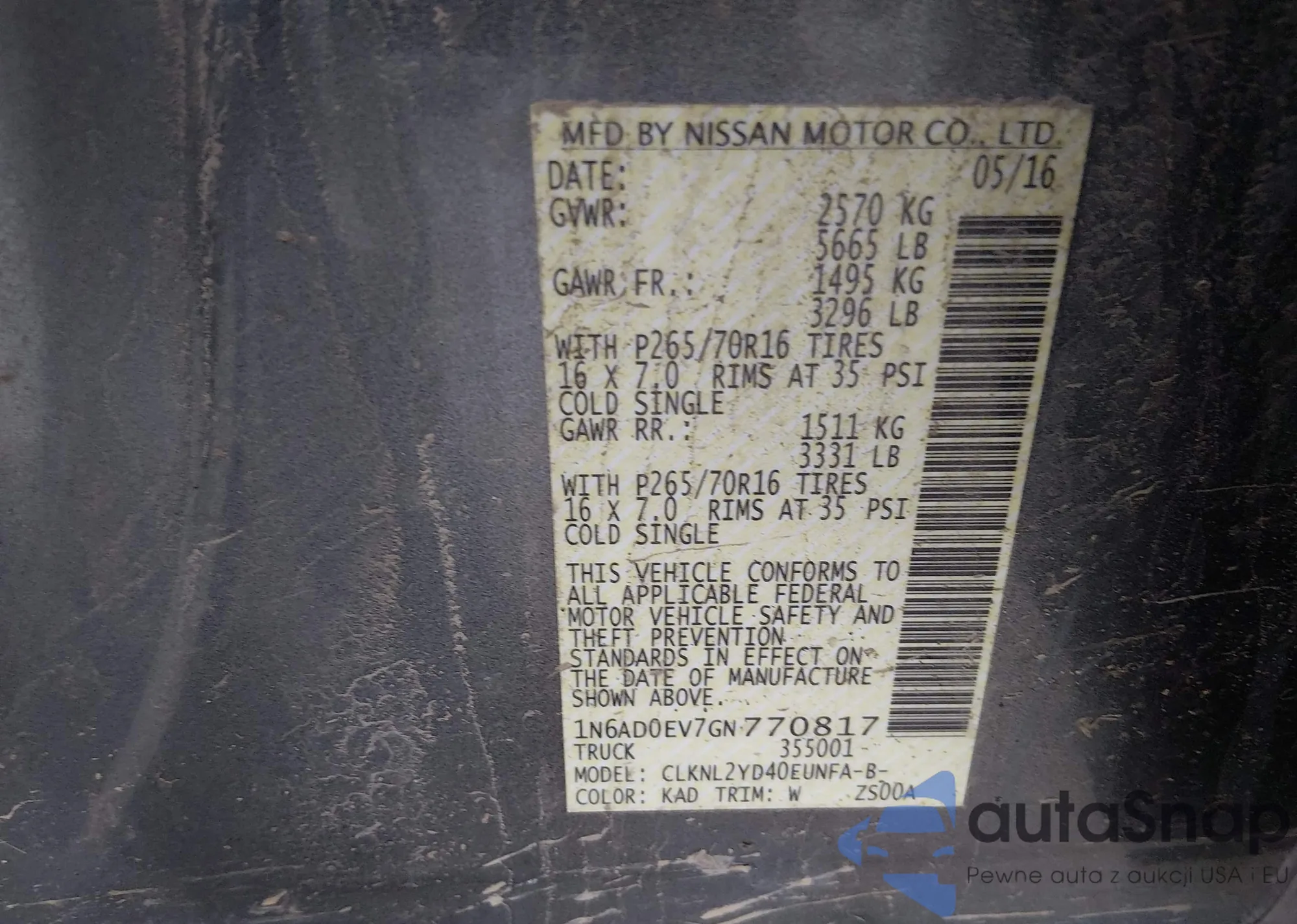 The car Nissan Navara (Frontier) 2016 (VIN 1N6AD0EV7GN770817) is sold by an unverified seller. We recommend checking the Carfax report and confirming registration possibilities before purchase.
