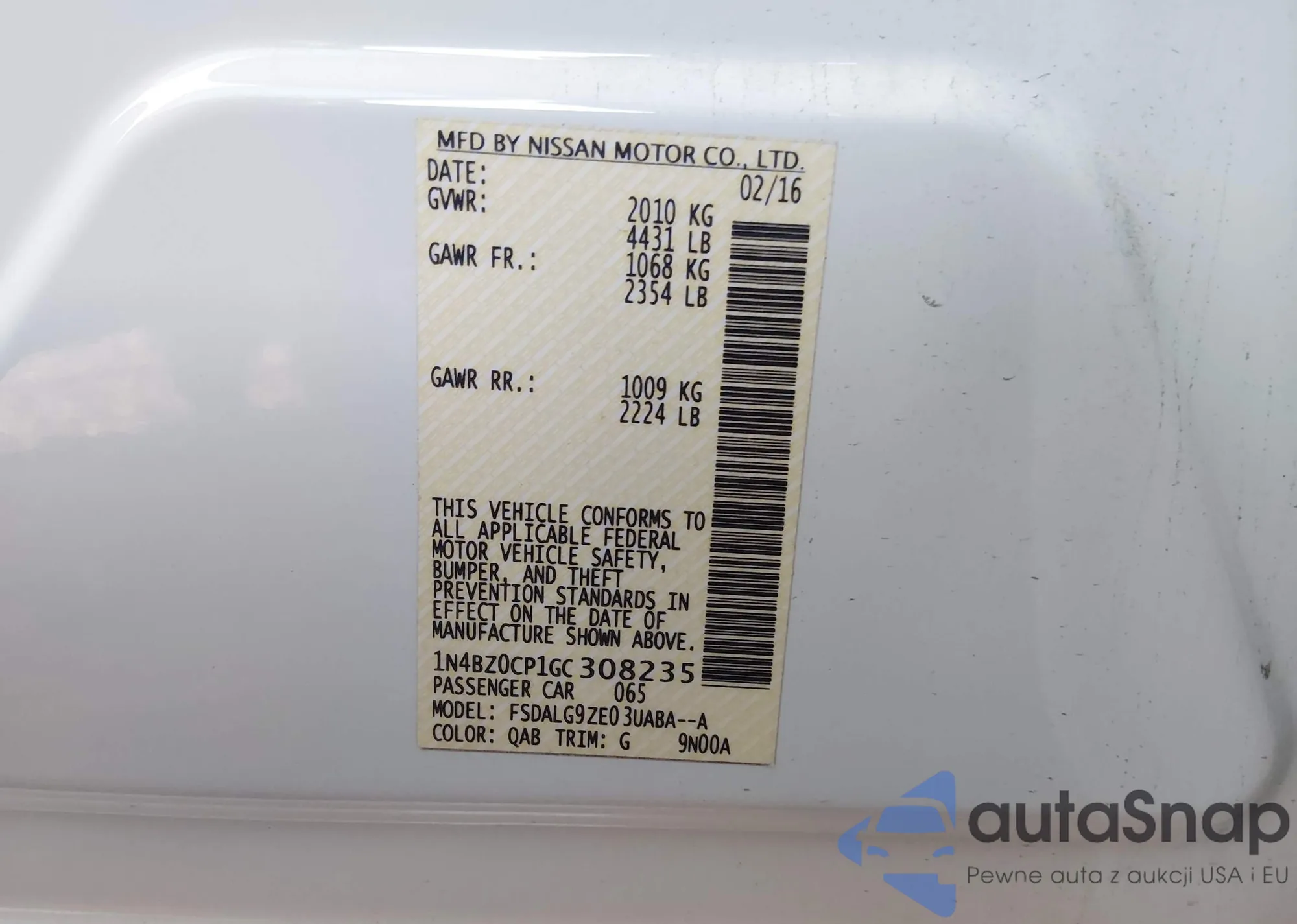 The car Nissan Leaf 2016 (VIN 1N4BZ0CP1GC308235) has not been auctioned before. The documents are clean, and the mileage matches or is below the market average. Sold by an insurance company – we recommend purchase. Delivery to the port will take approx. 6–8 weeks.
