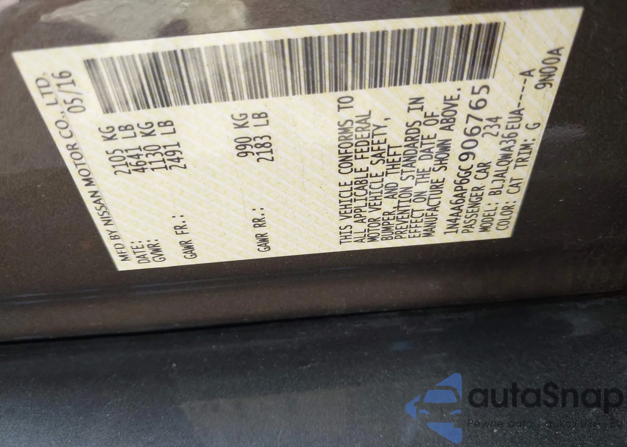 • VIN: 1N4AA6AP6GC906765