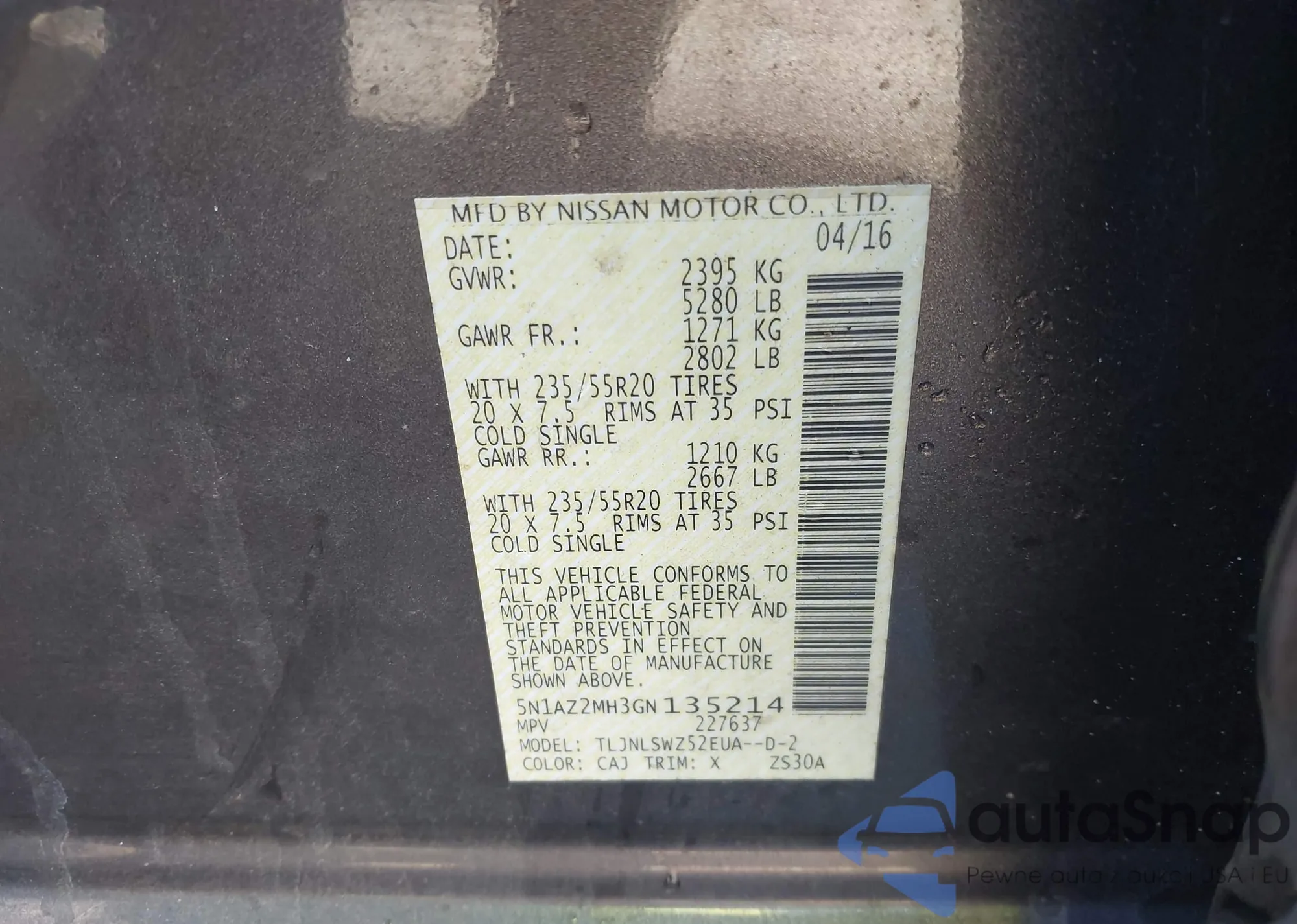 VIN: 5N1AZ2MH3GN135214