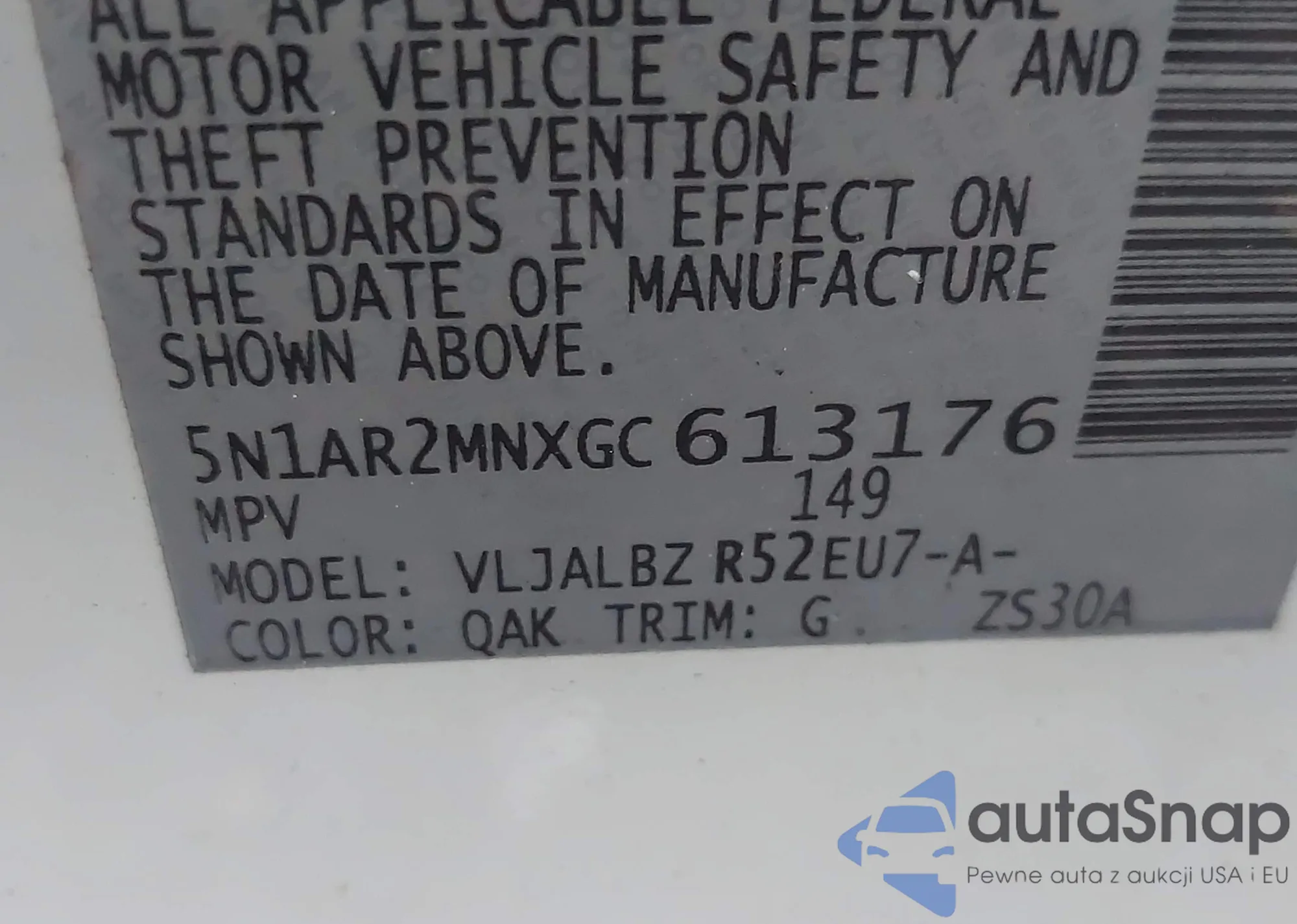 • VIN: 5N1AR2MNXGC613176