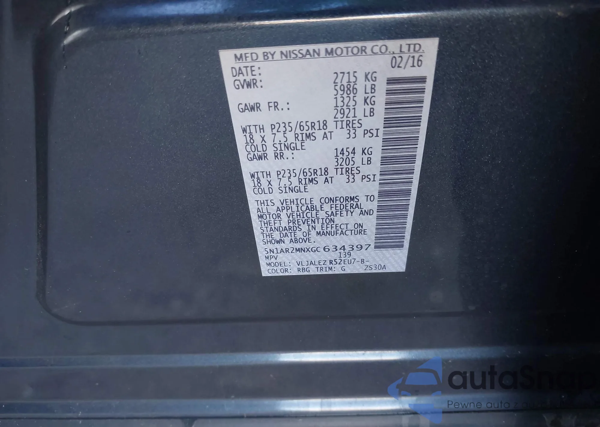 VIN: 5N1AR2MNXGC634397