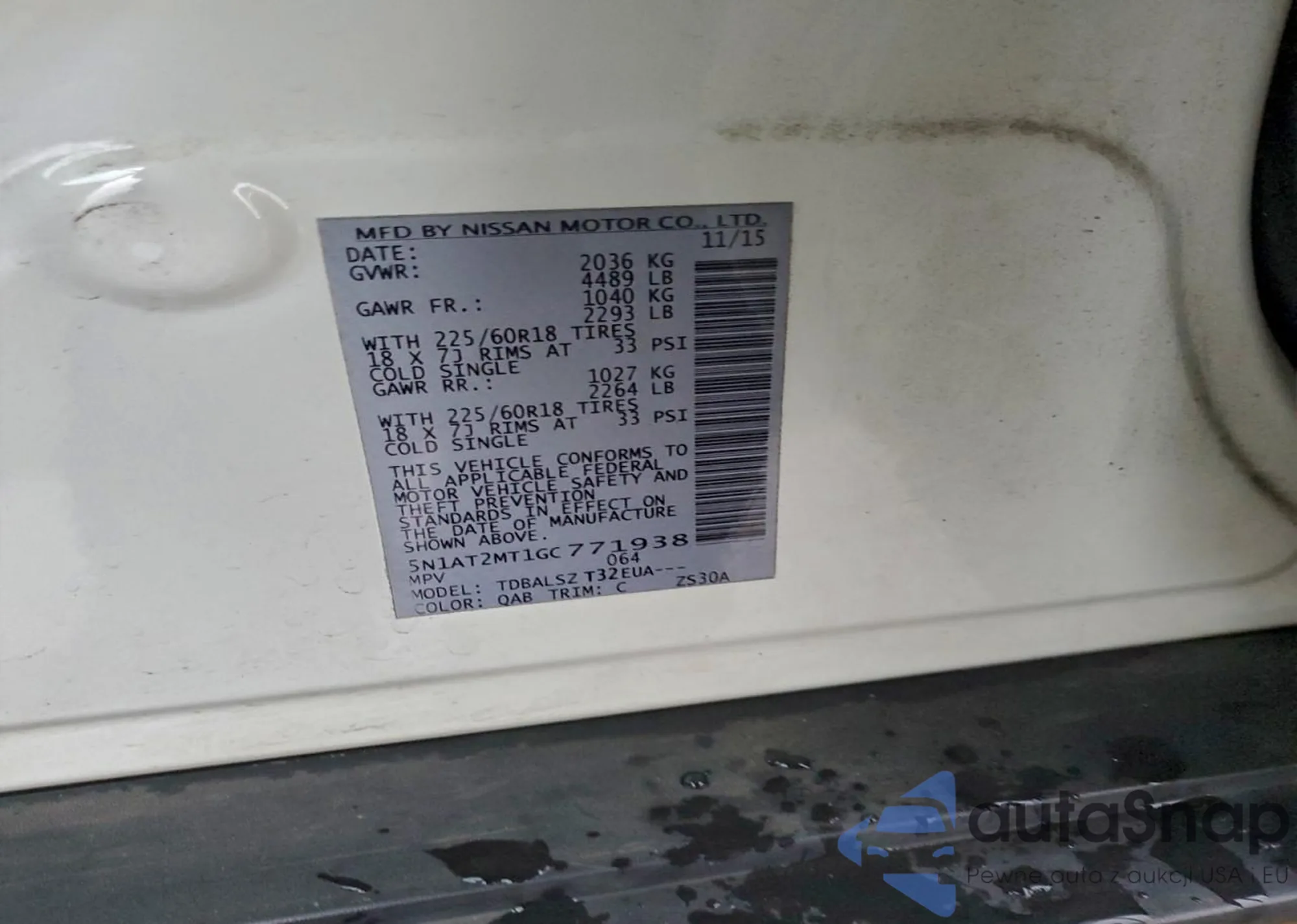 Nissan Rogue 2016 – Vehicle History (Sold at COPART)
