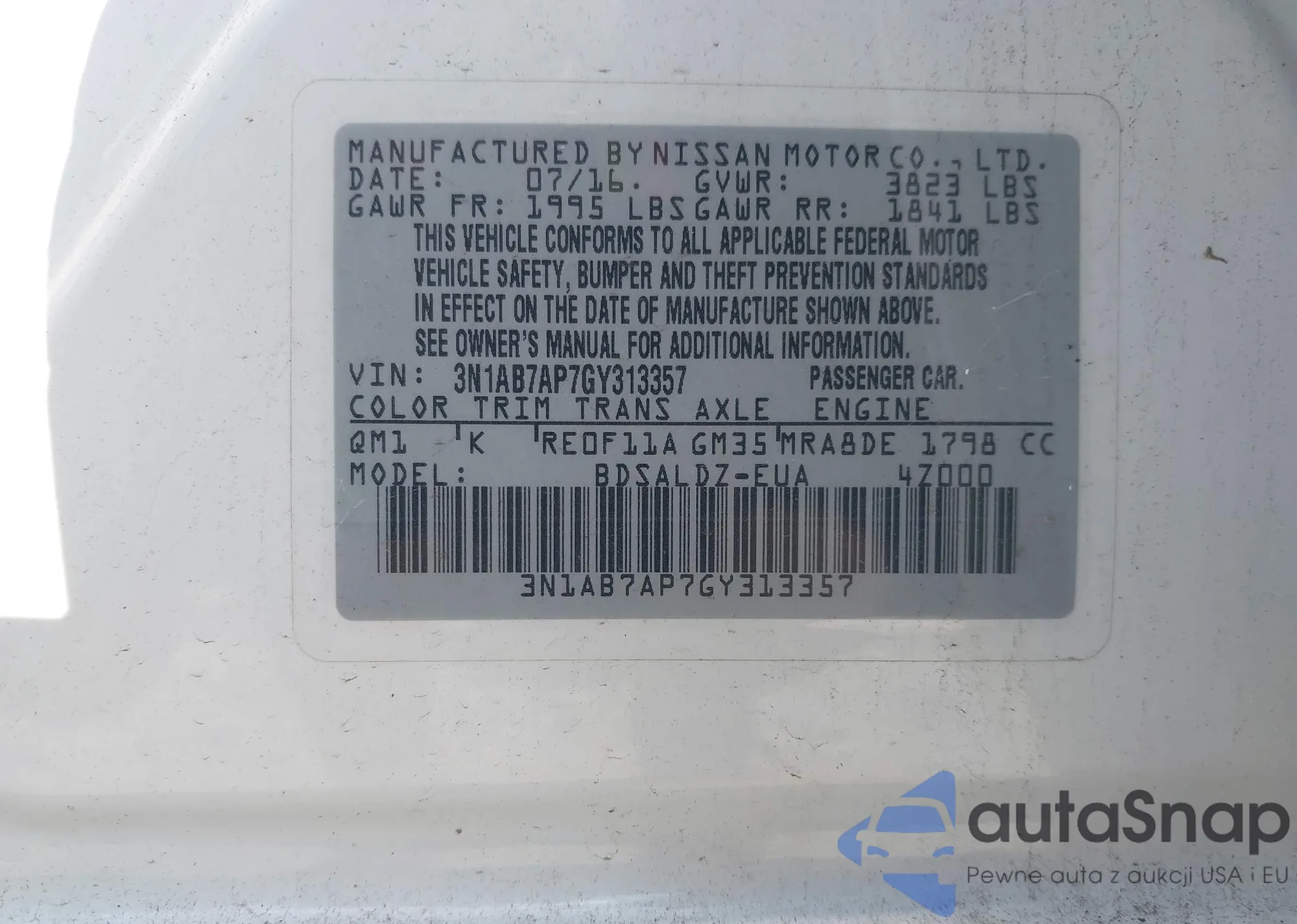 VIN: 3N1AB7AP7GY313357
